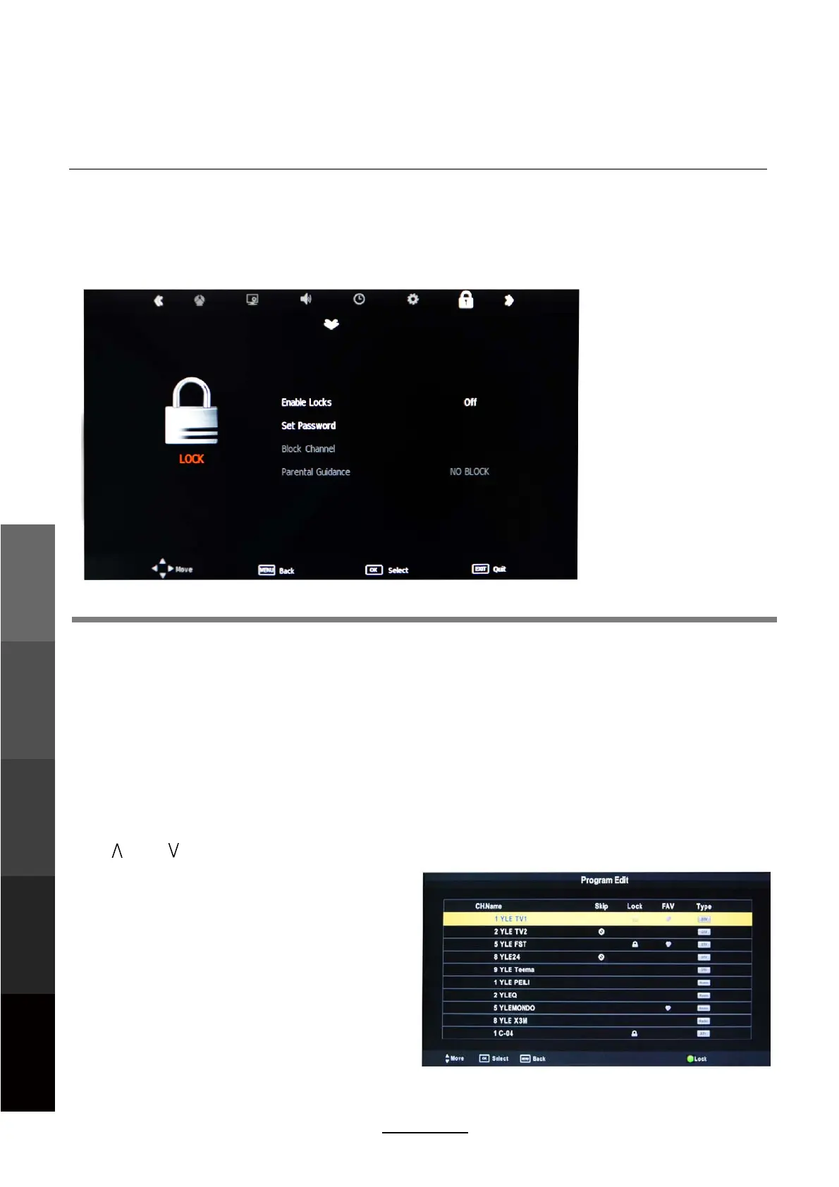 Block Channle: When a channel is locked, you must enter your password to view the channel.