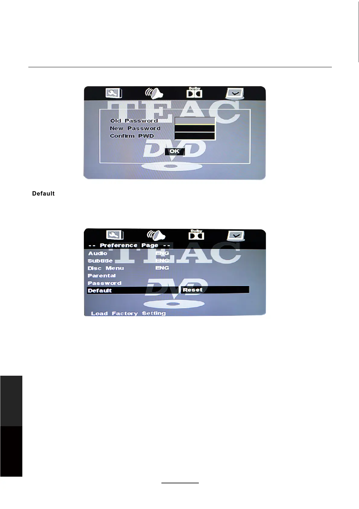 Reset the DVD settings to the original factory settings by choosing RESET and pressing the OK button.