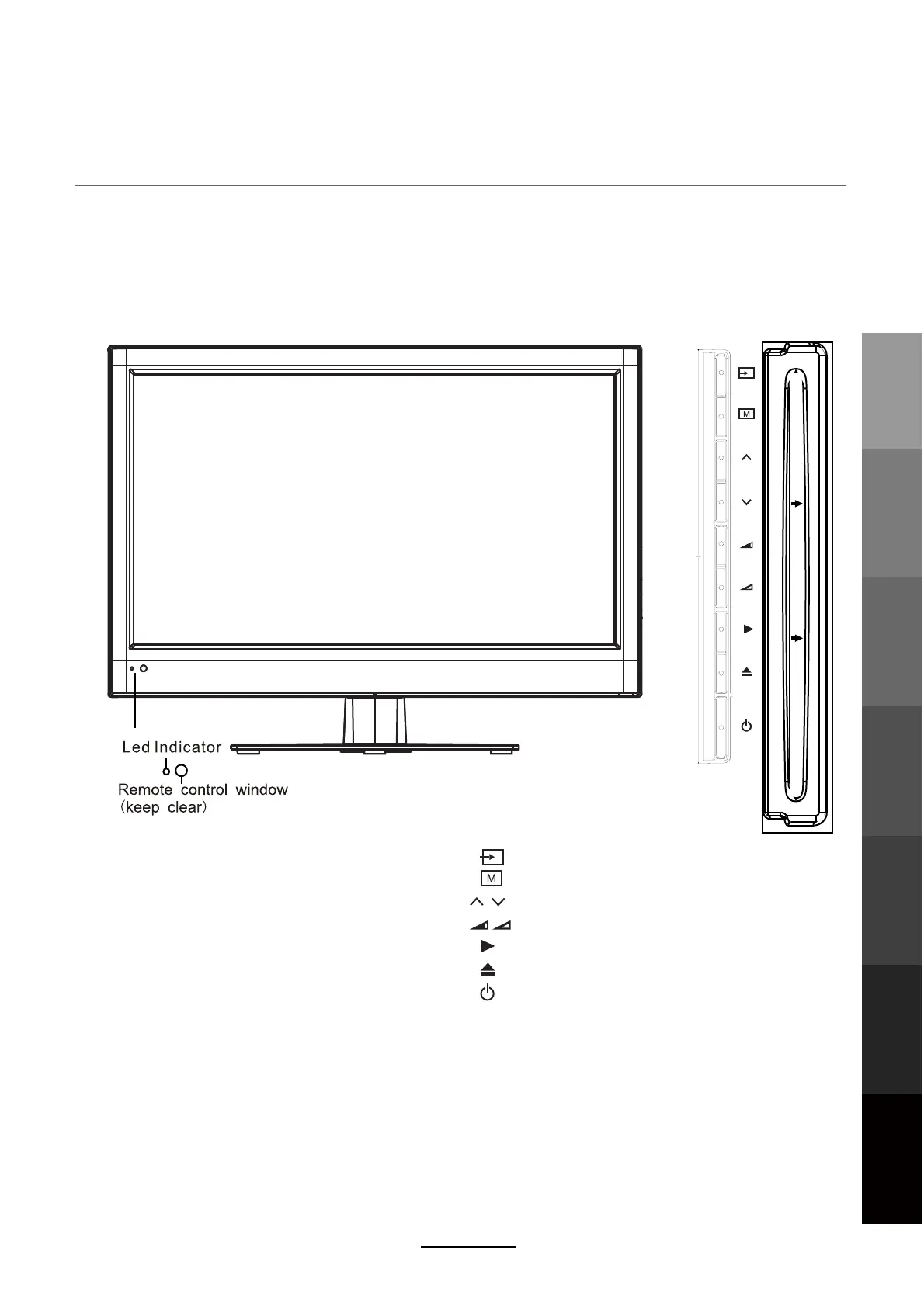 (POWER): Turn on/standby the TV set.