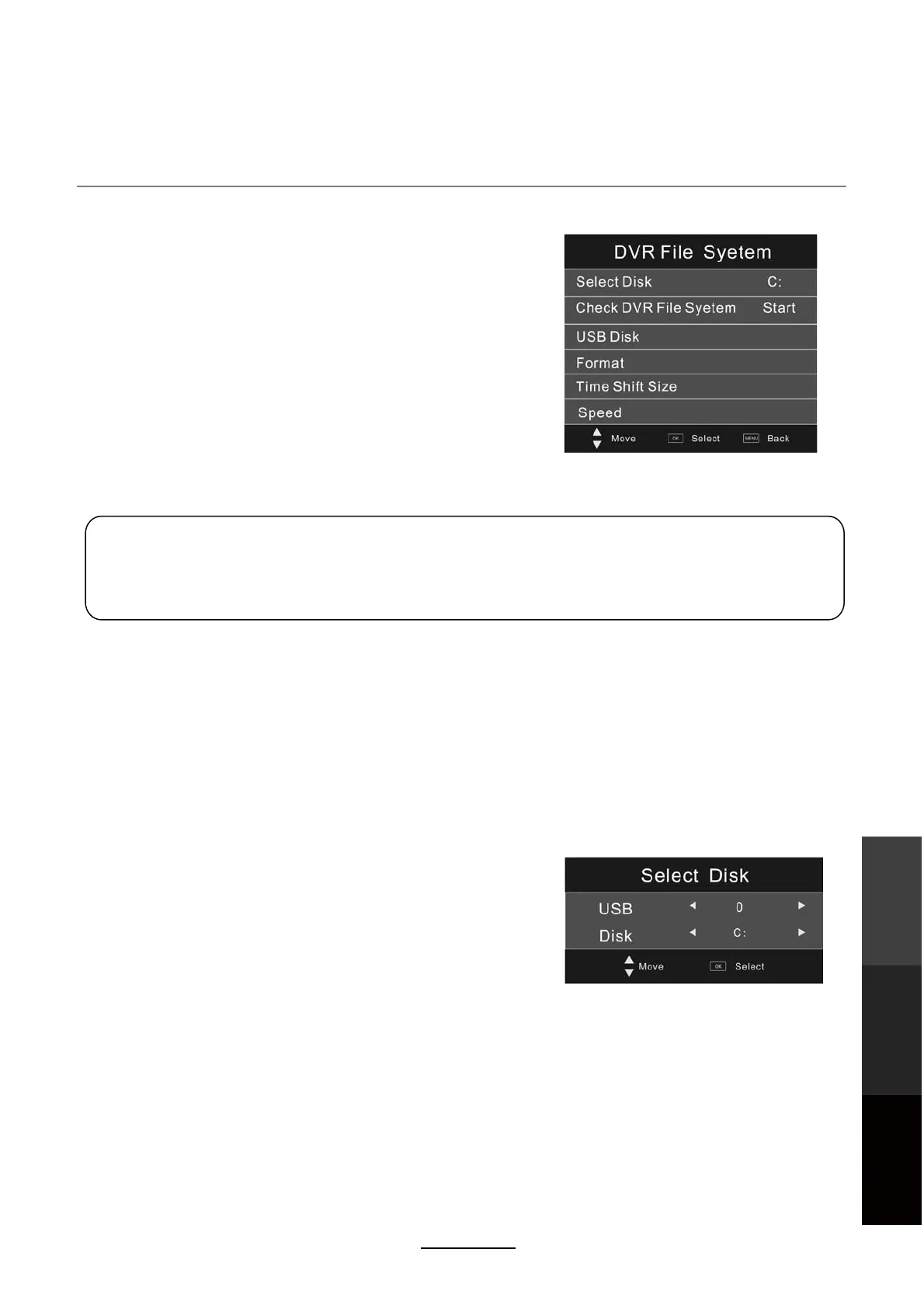 2. Under the CHANNEL tab, select DVR File System and press OK