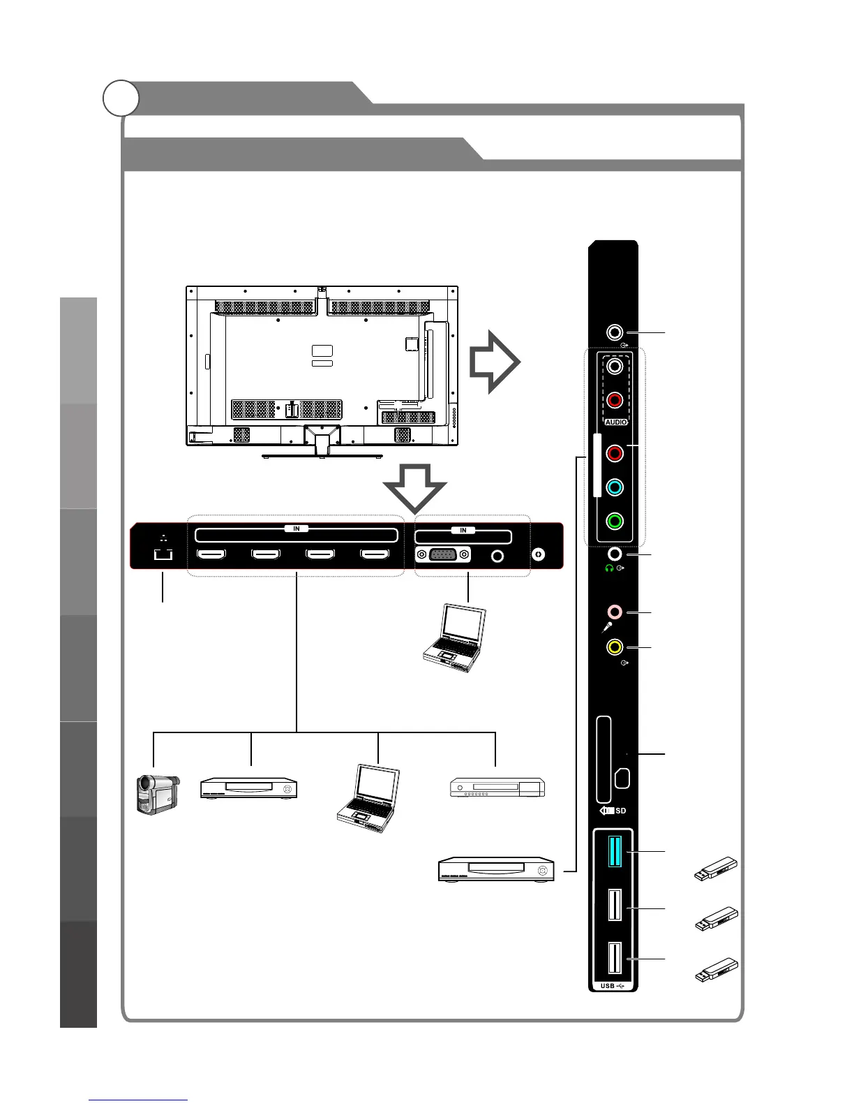 You can connect the TV with video devices such as DVD/VCD player, VCR and video camera