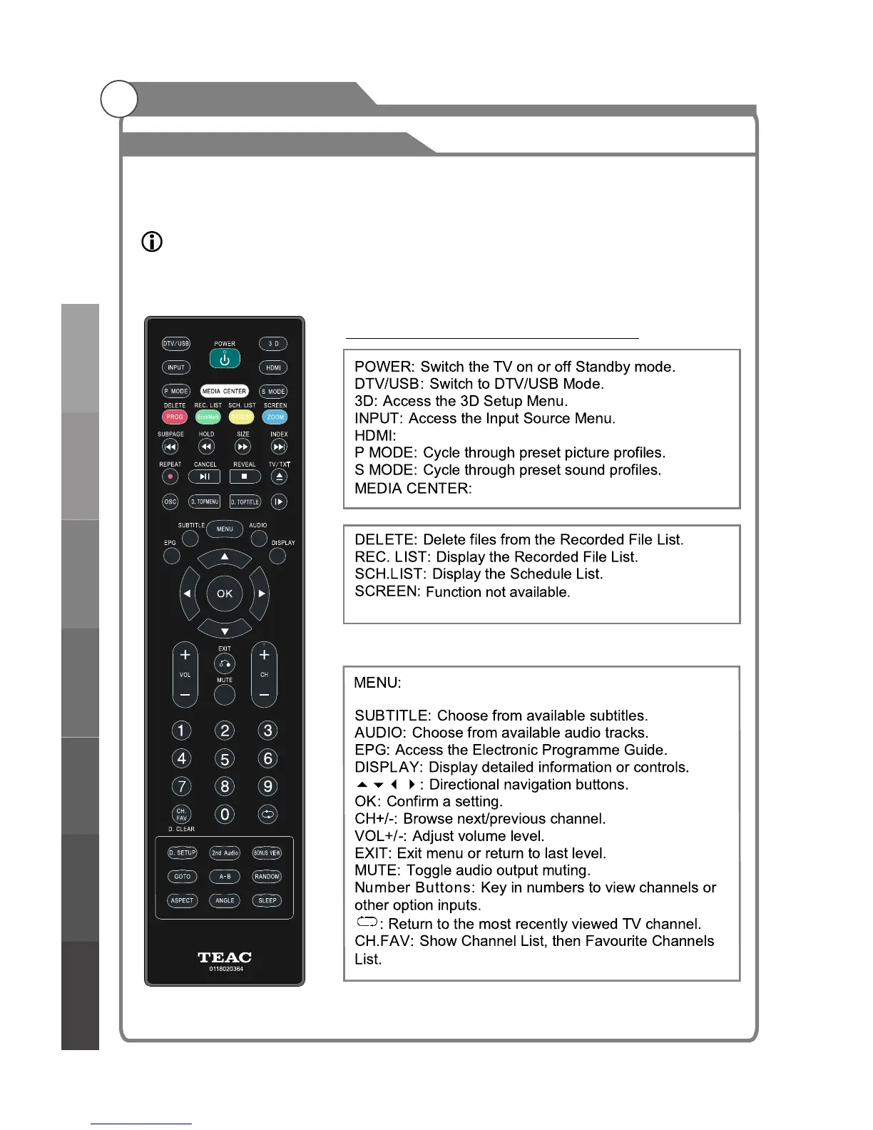 Remote Control Buttons and Functions