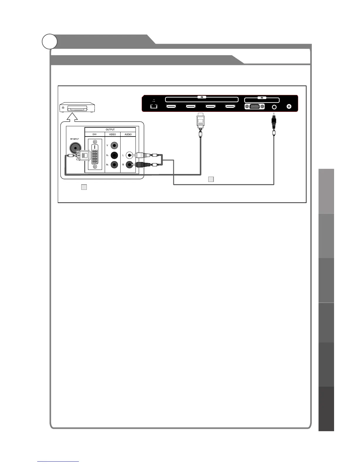 When connecting a DVD player/STB, match the color of the connection terminal to the