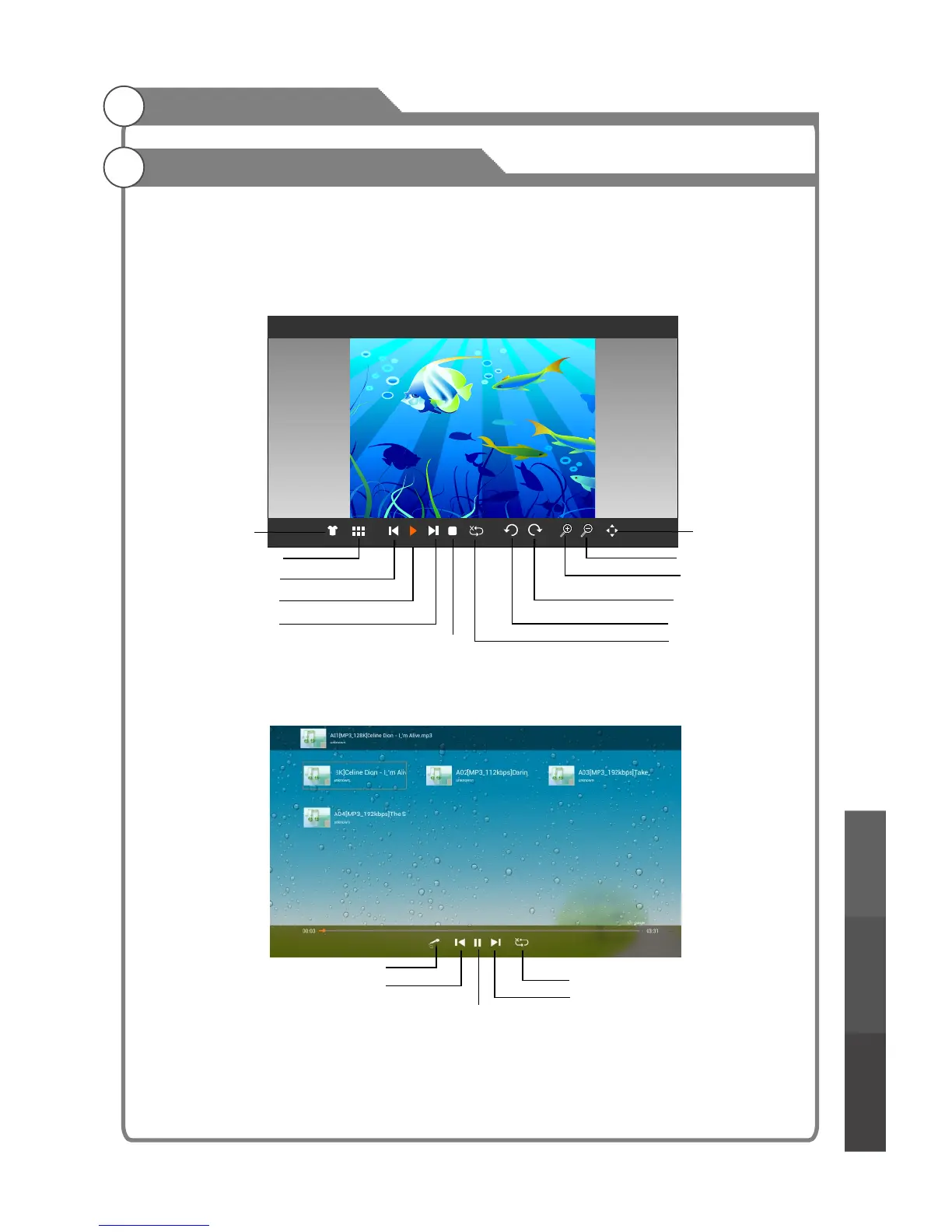 a.Wallpaper b.List c.Prev d.Play/Pause e.Next f.Stop g.Sequence h.Anticlockwise