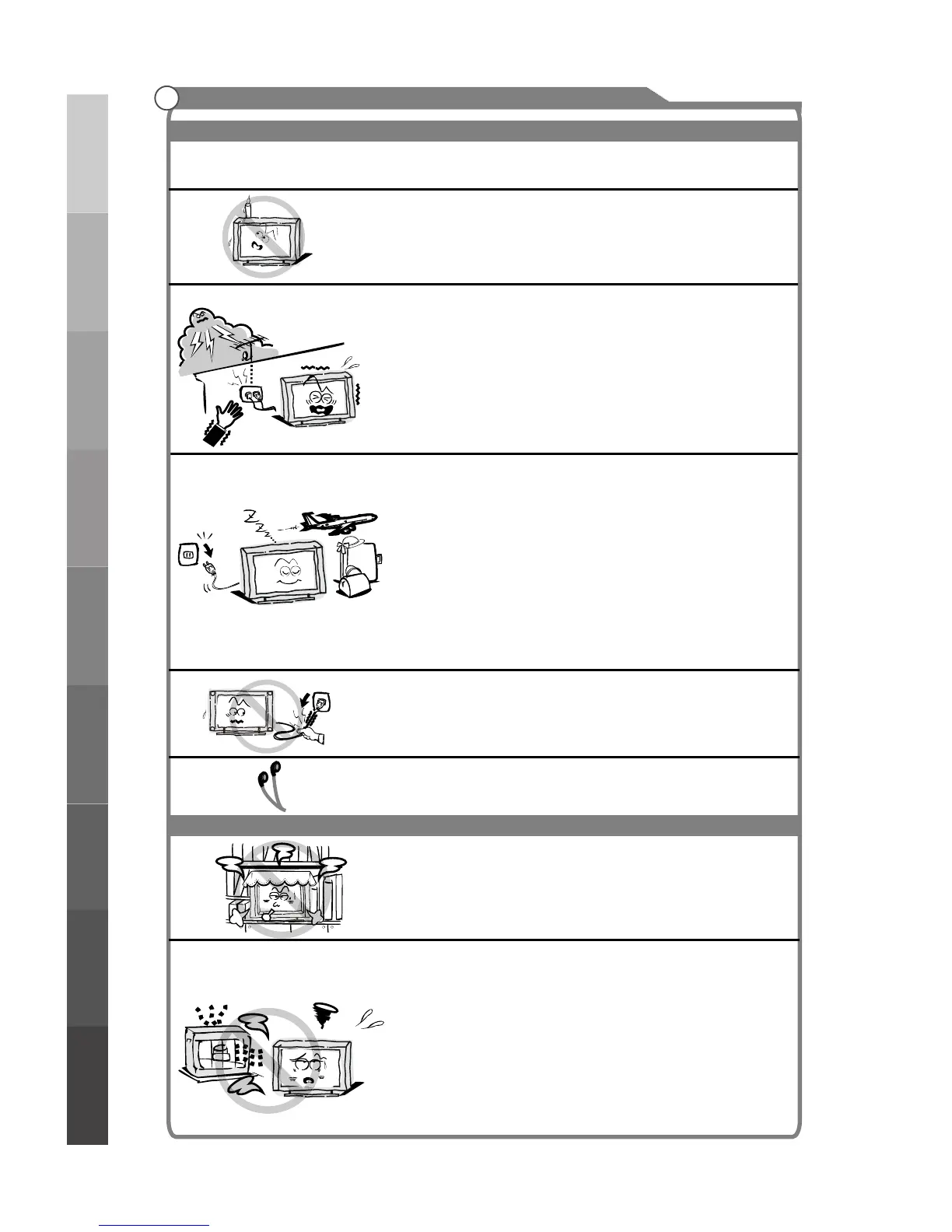 Do not push or scratch the front filter, or place any objects on top of the TV set. The