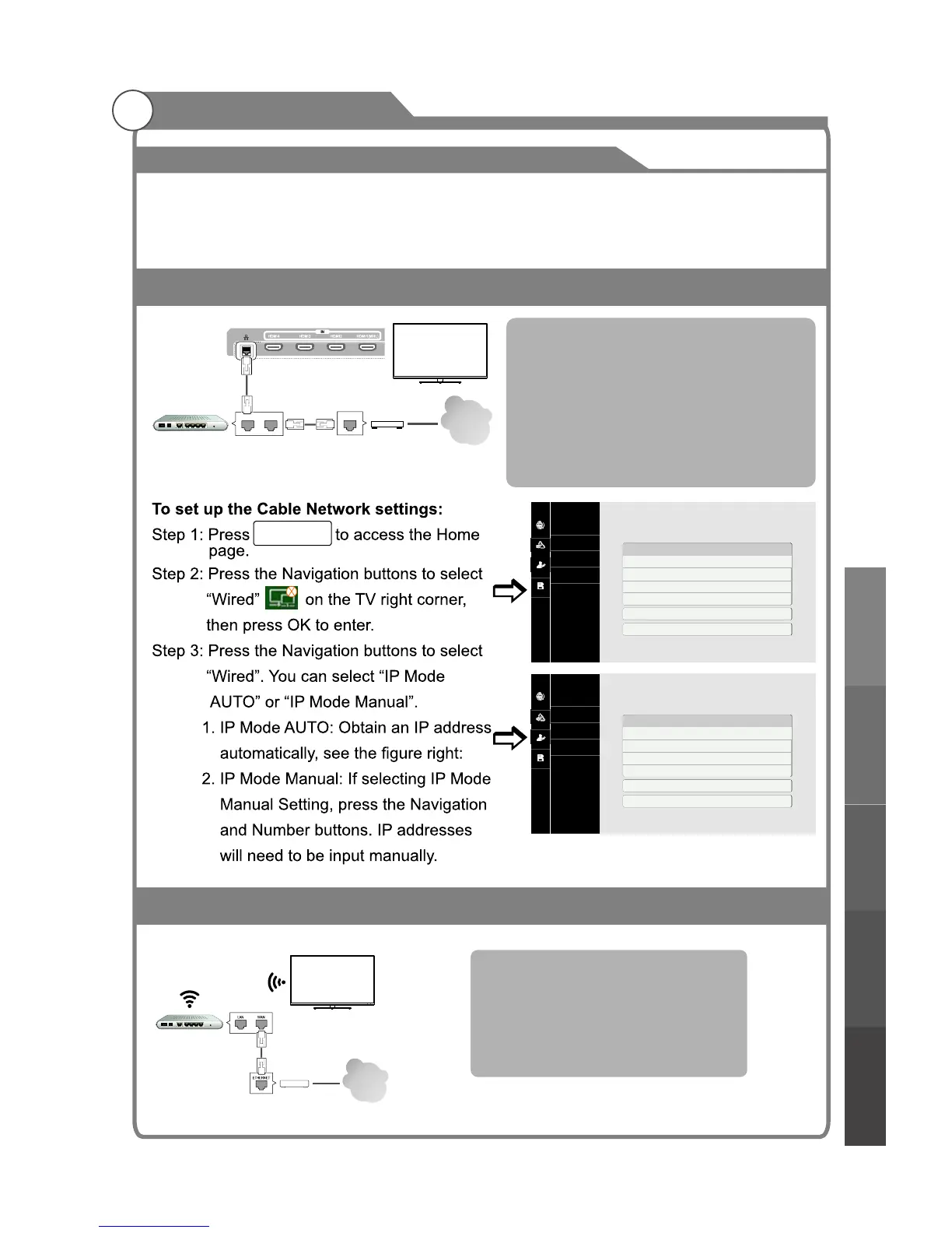 network, see the left illustration and set