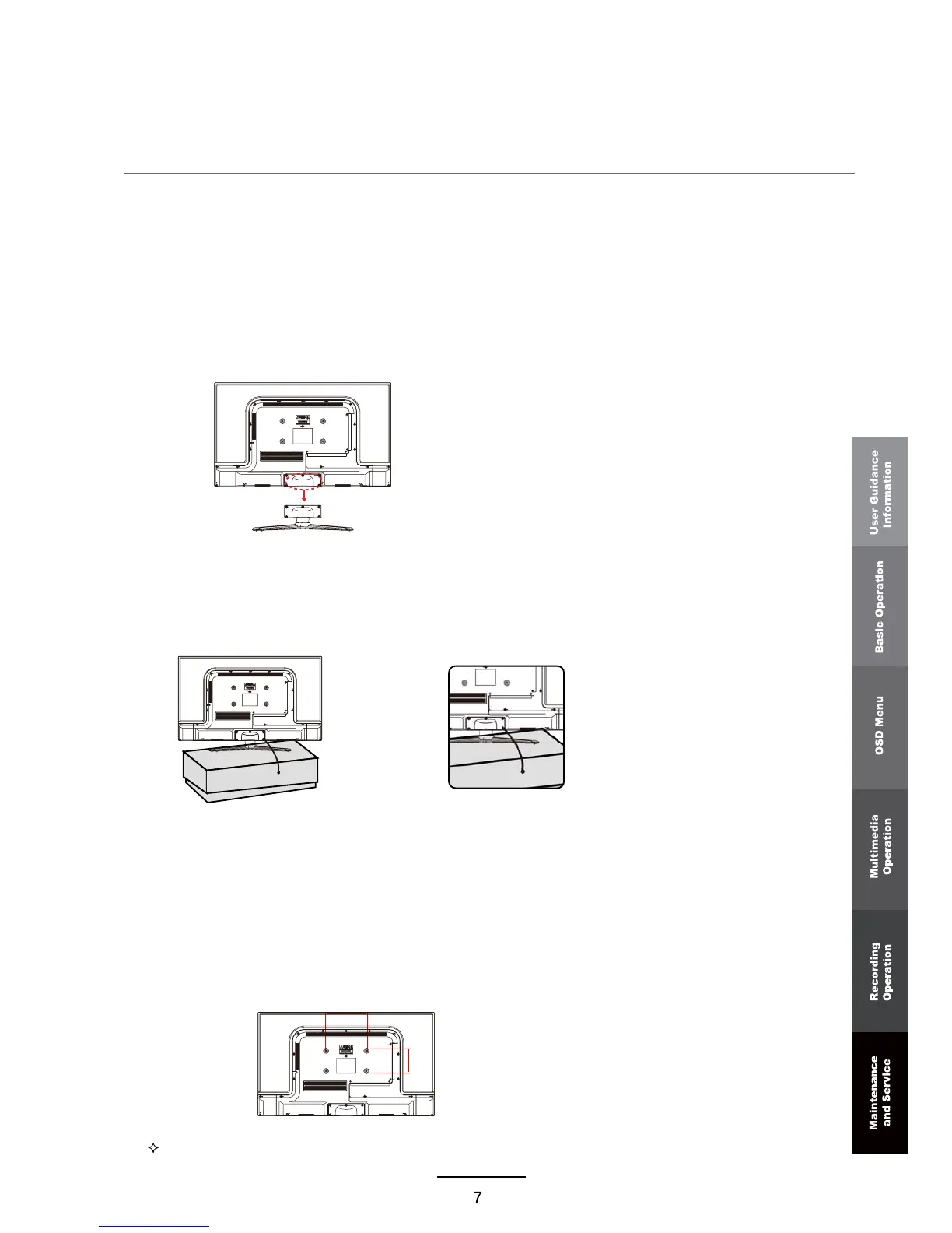 4. To reinstall the stand, place the unit (face down) on a soft surface and reverse the aboveinstructions.