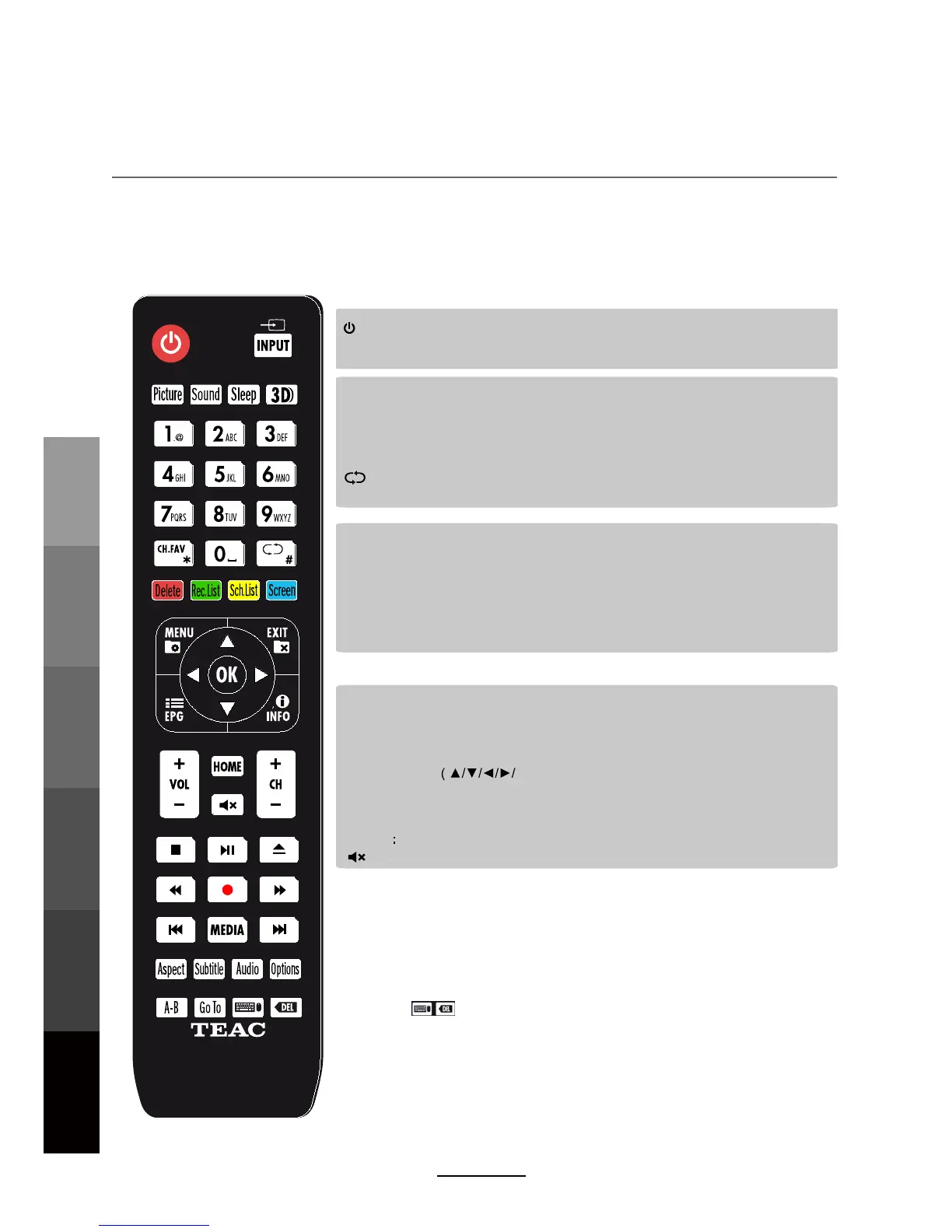 : 1- While playing music, press this button to turn off the LED TV screen.