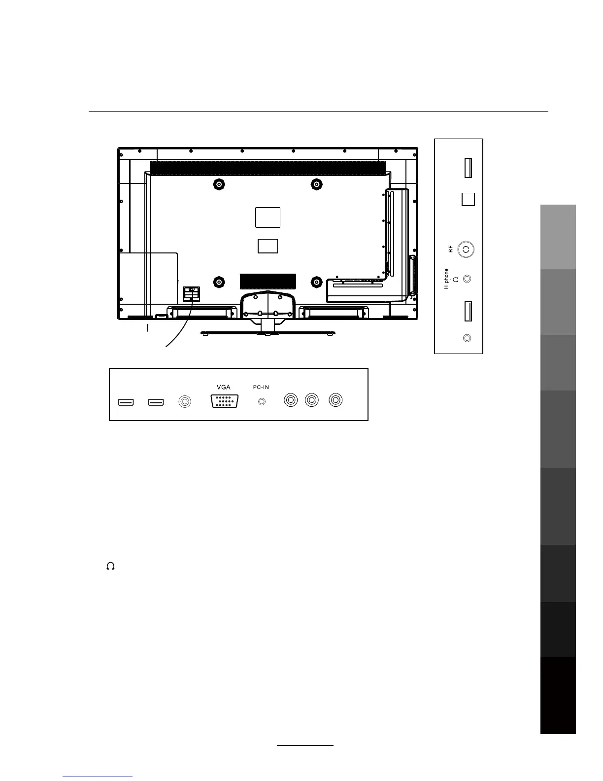 VGA: For PC video input. Connect to the VGA/RGB plug on the PC.