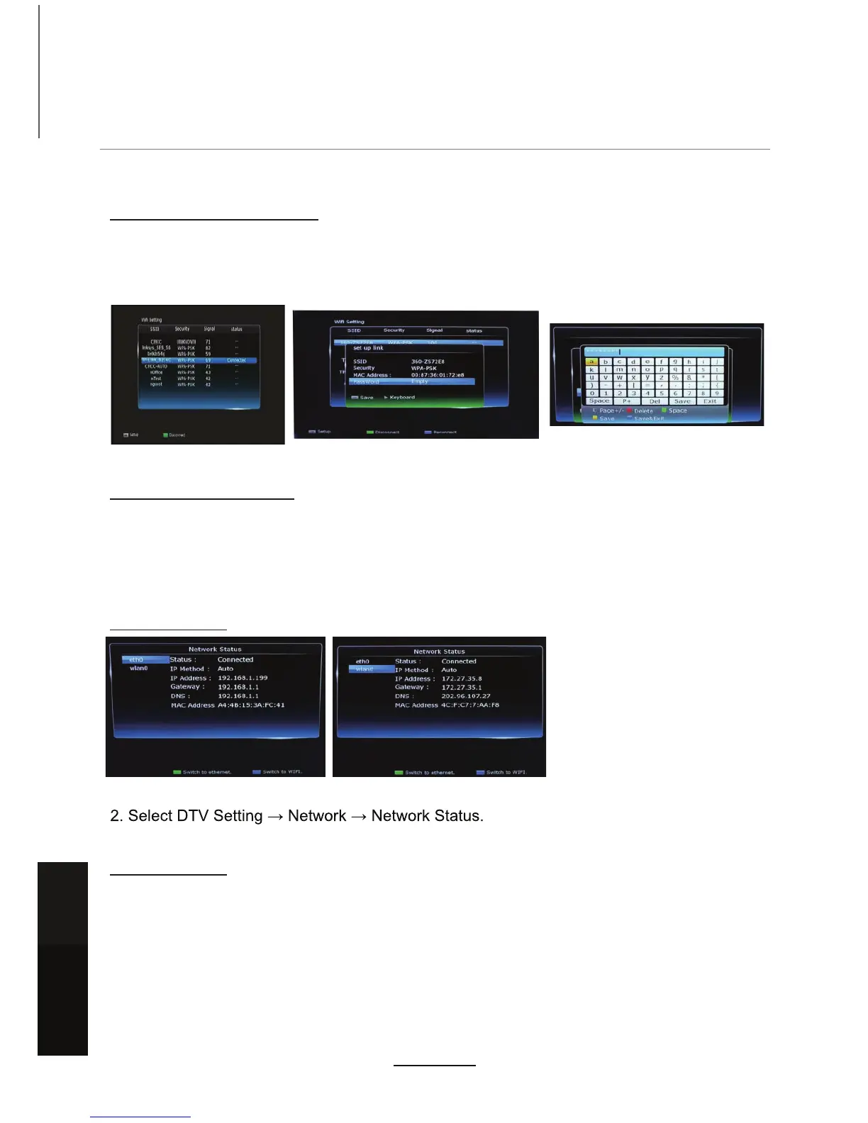 2. Select DTV Setting → Network → WiFi setting.