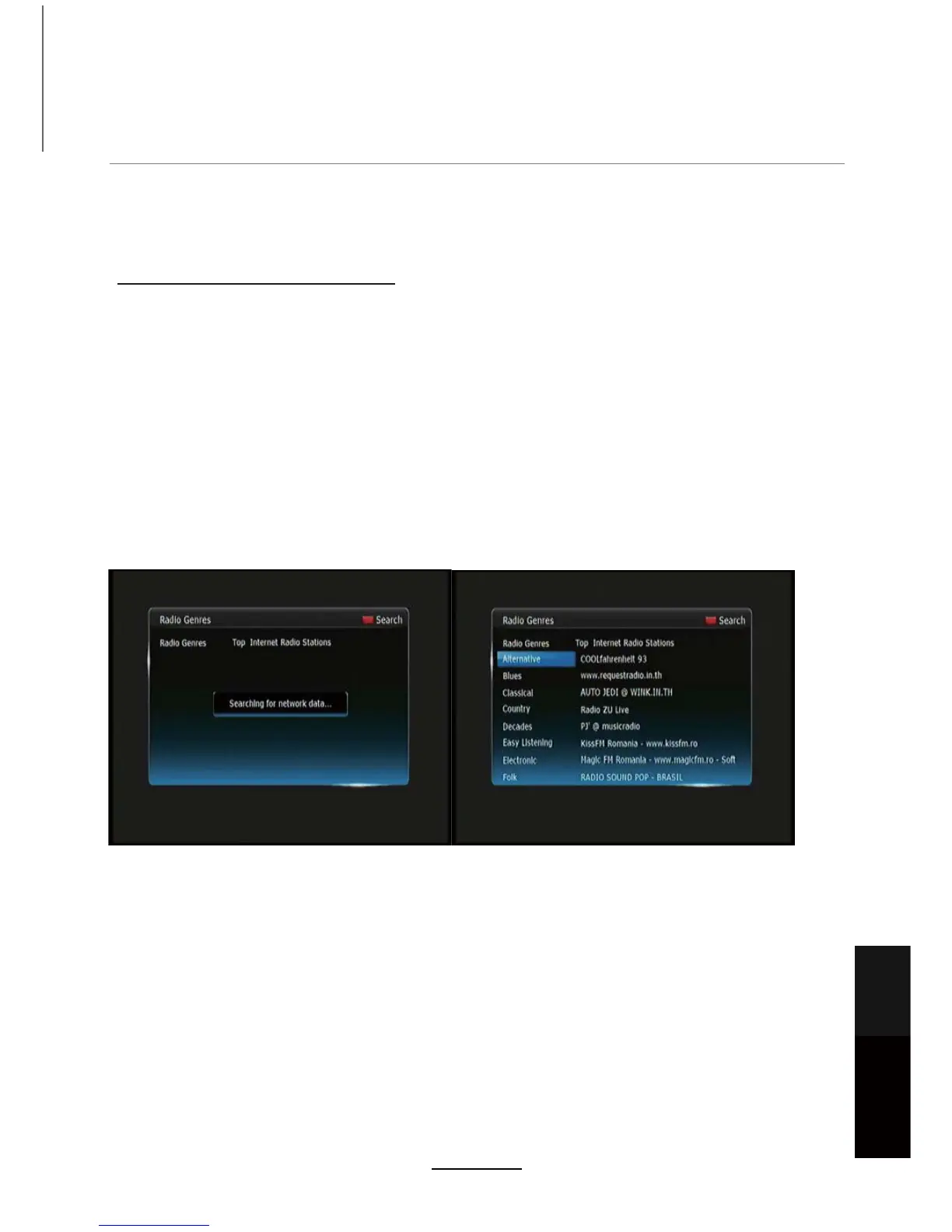 screen. Select a genre by pressing [OK]. A list of stations from that genre will be displayed on