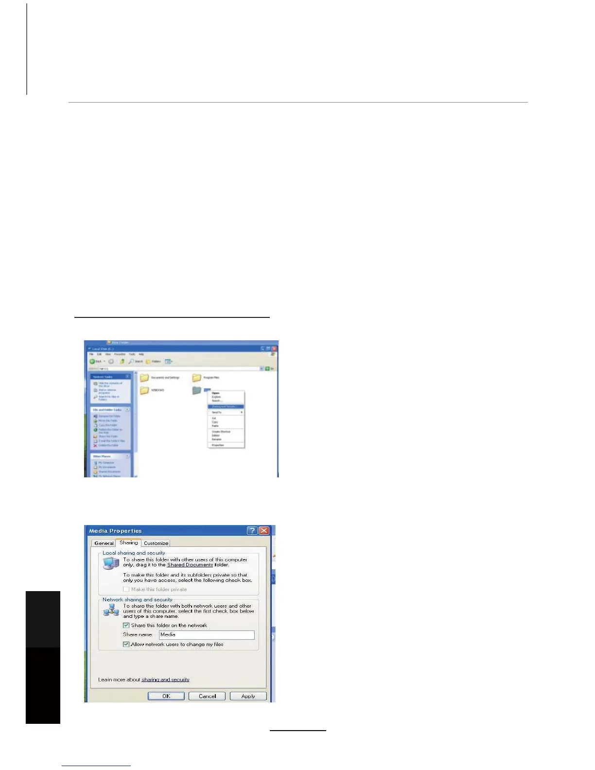 1. Right click the “Media” folder, select “Sharing and Security…”