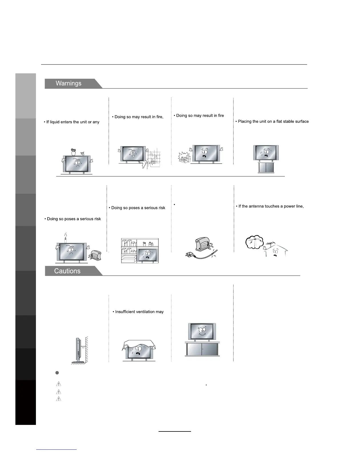 The following precautions are divided into "Warnings" and "Cautions".