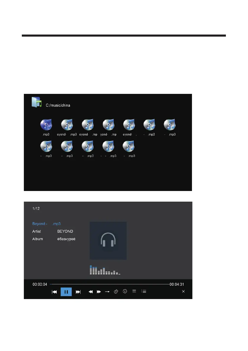 Press the ▲/▼ buttons to select the desired audio file, and then press the OK to play.