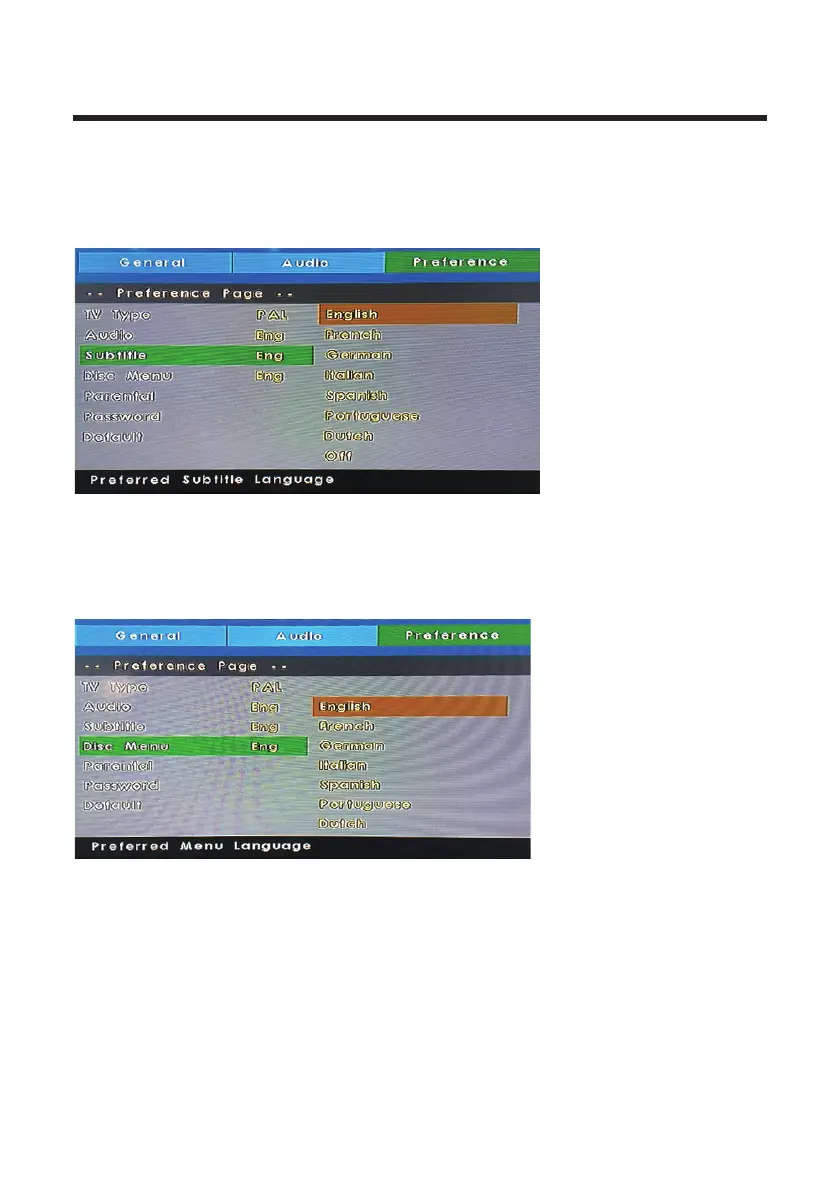 Choose a preferred subtitle language to be used if it is available on the disc. If it is not