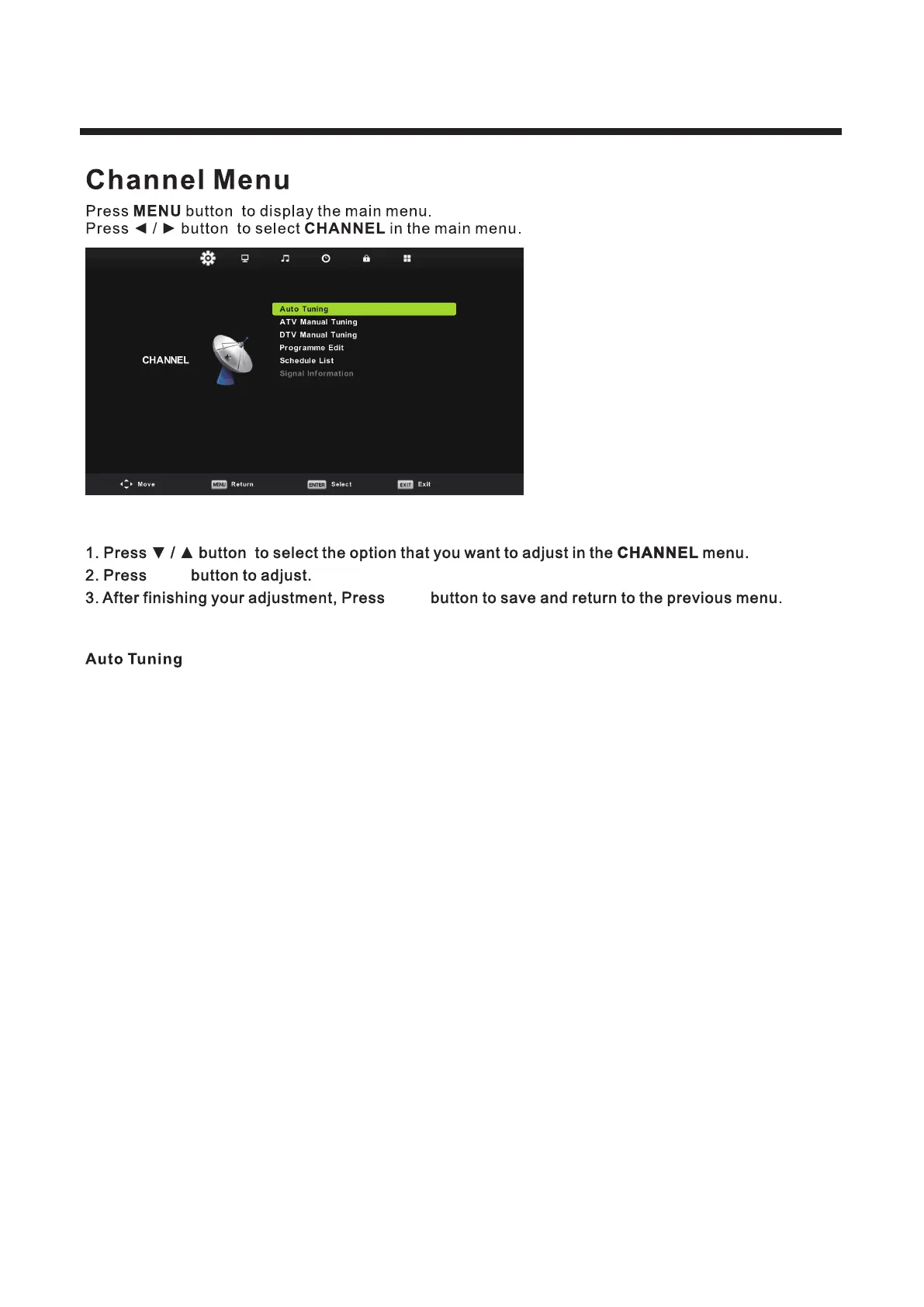 Teac LEV24A121 - The Main Menu; Channel Menu