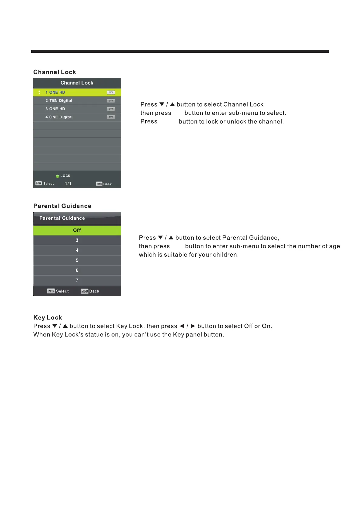Teac LEV24A121 - Channel Lock, Parental Guidance, and Key Lock