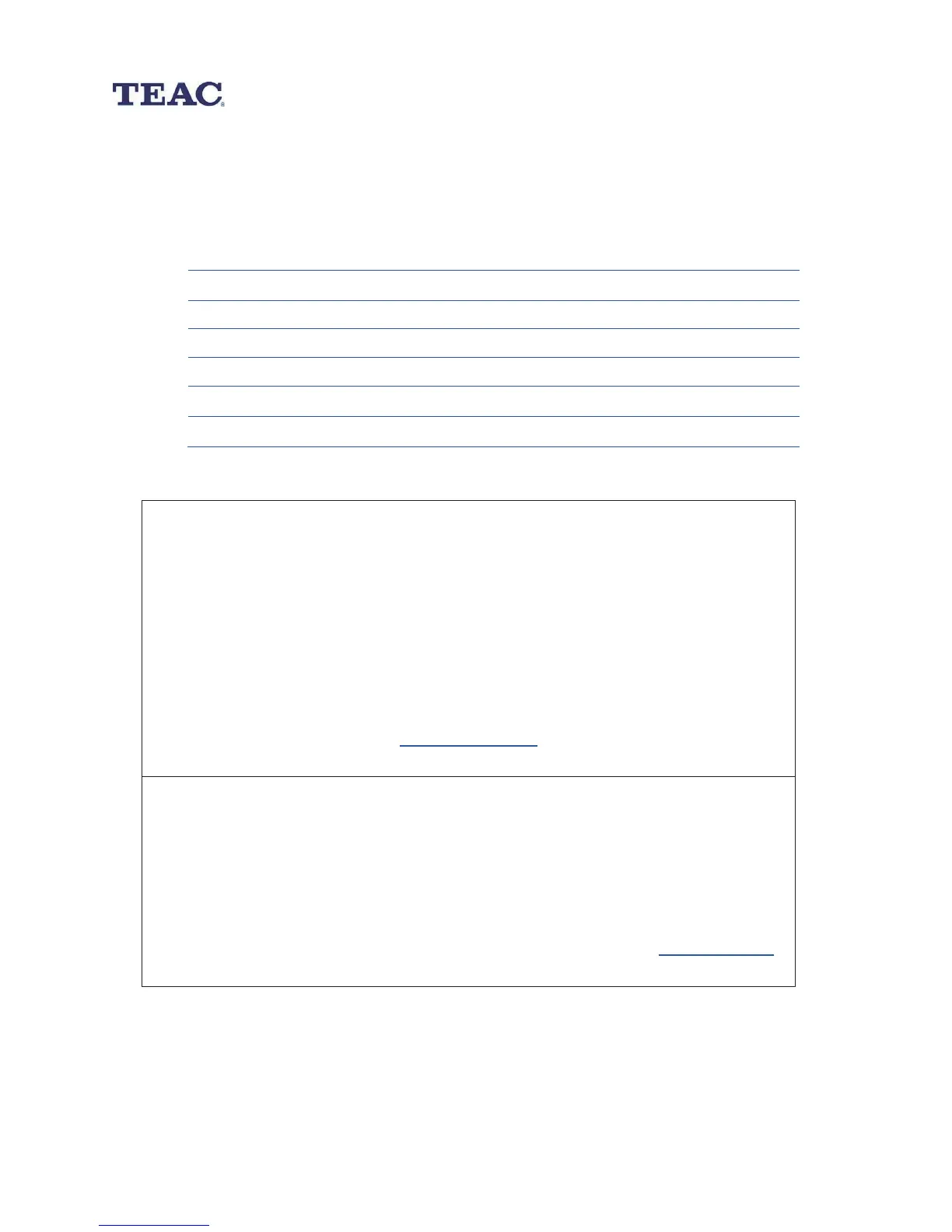 TEAC Warranty Service Hotline