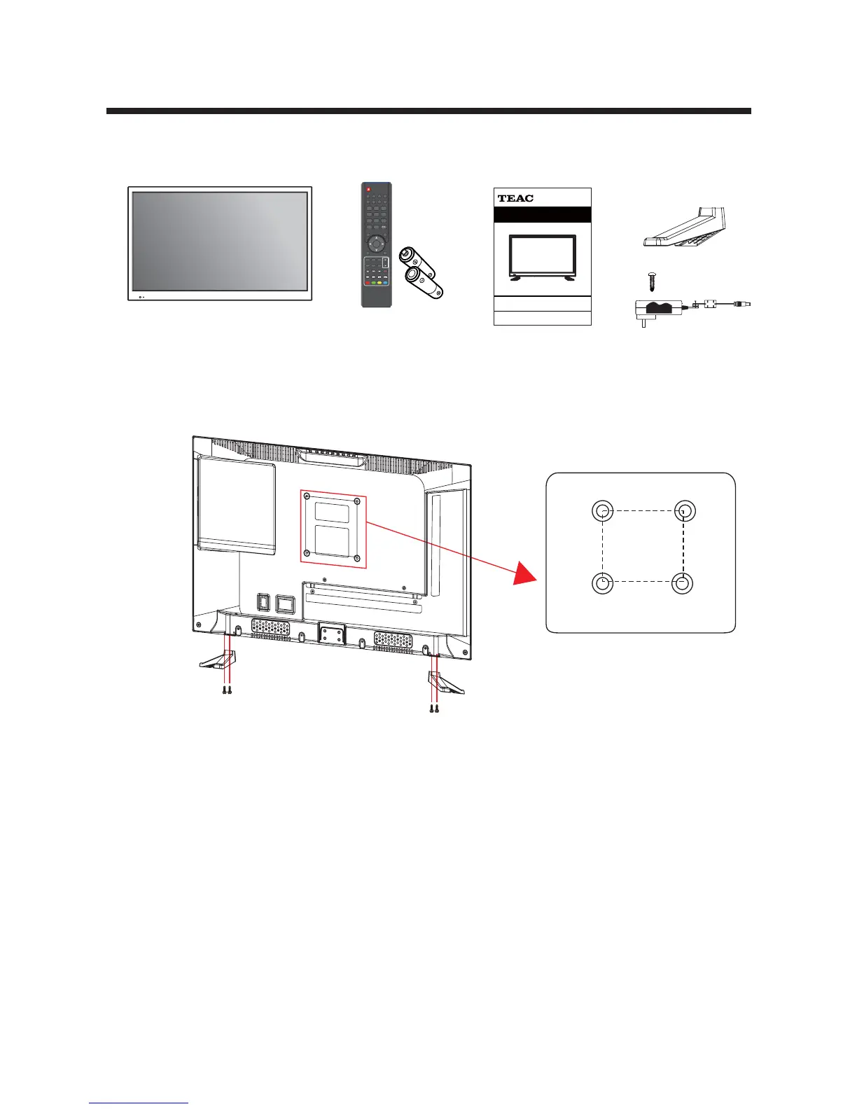 The TV is provided with mounting holes for a VESA approved wall mounting bracket