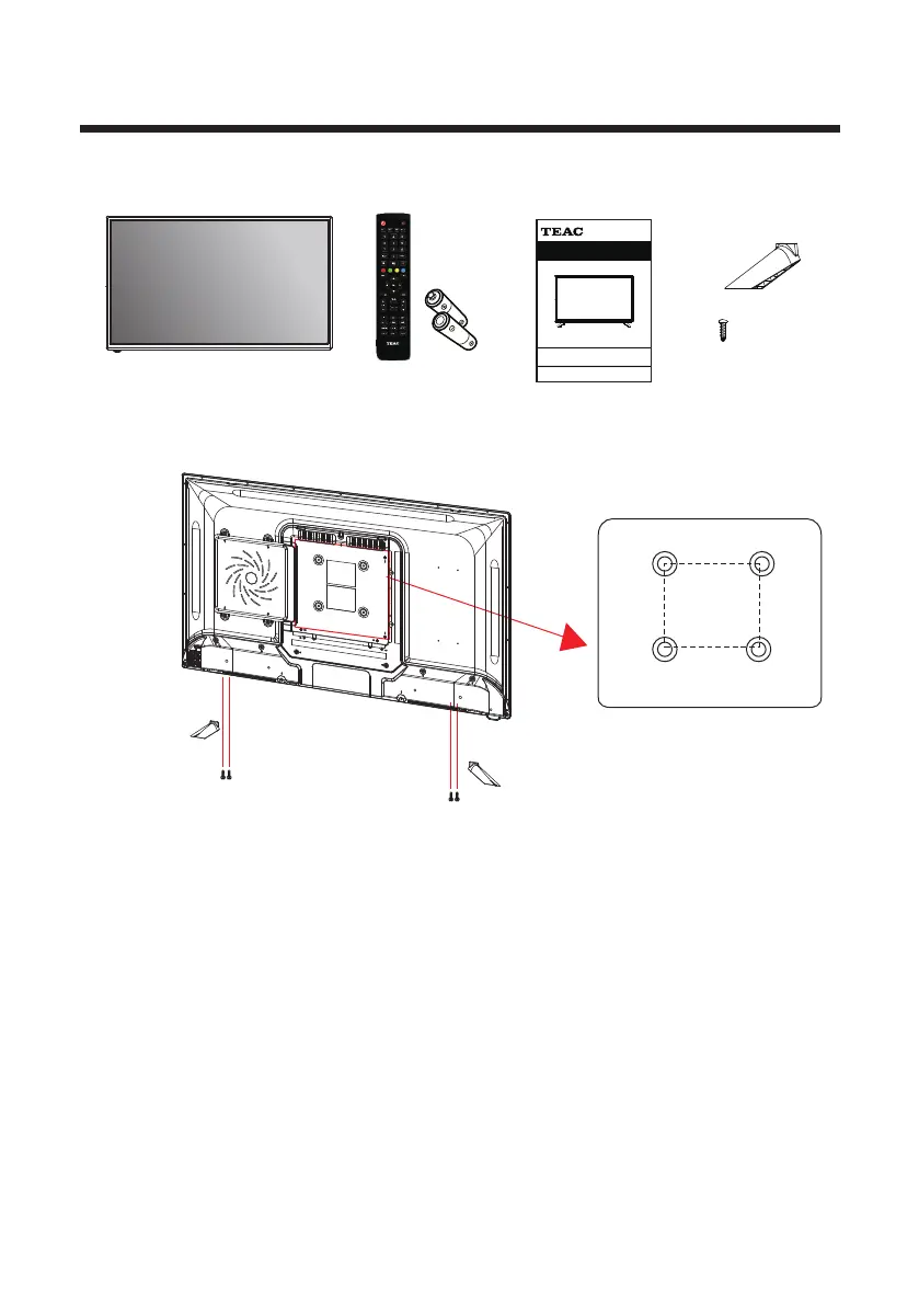 The TV is provided with mounting holes for a VESA approved wall mounting bracket
