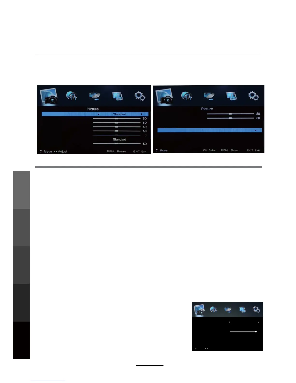 Picture Mode: There are four preset settings to choose from: Standard, Dynamic, Personal and Mild.