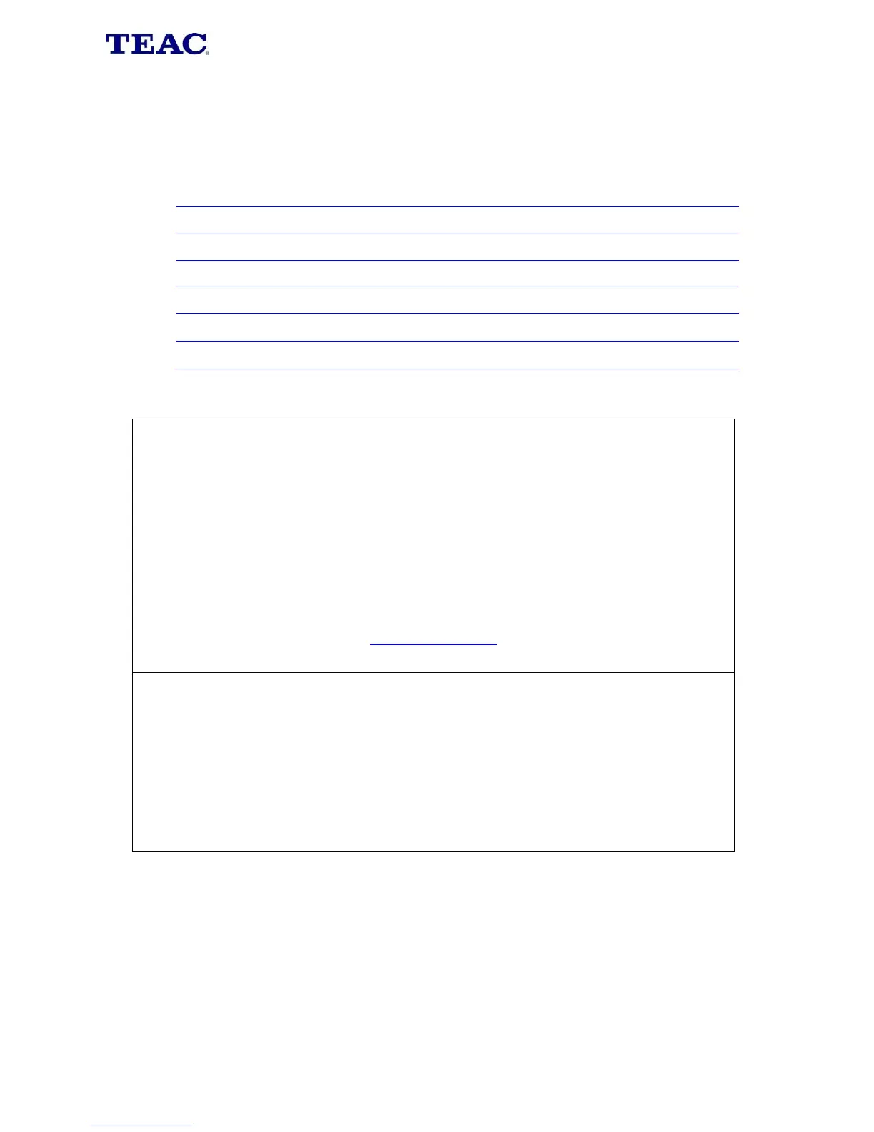 TEAC Warranty Service Hotline