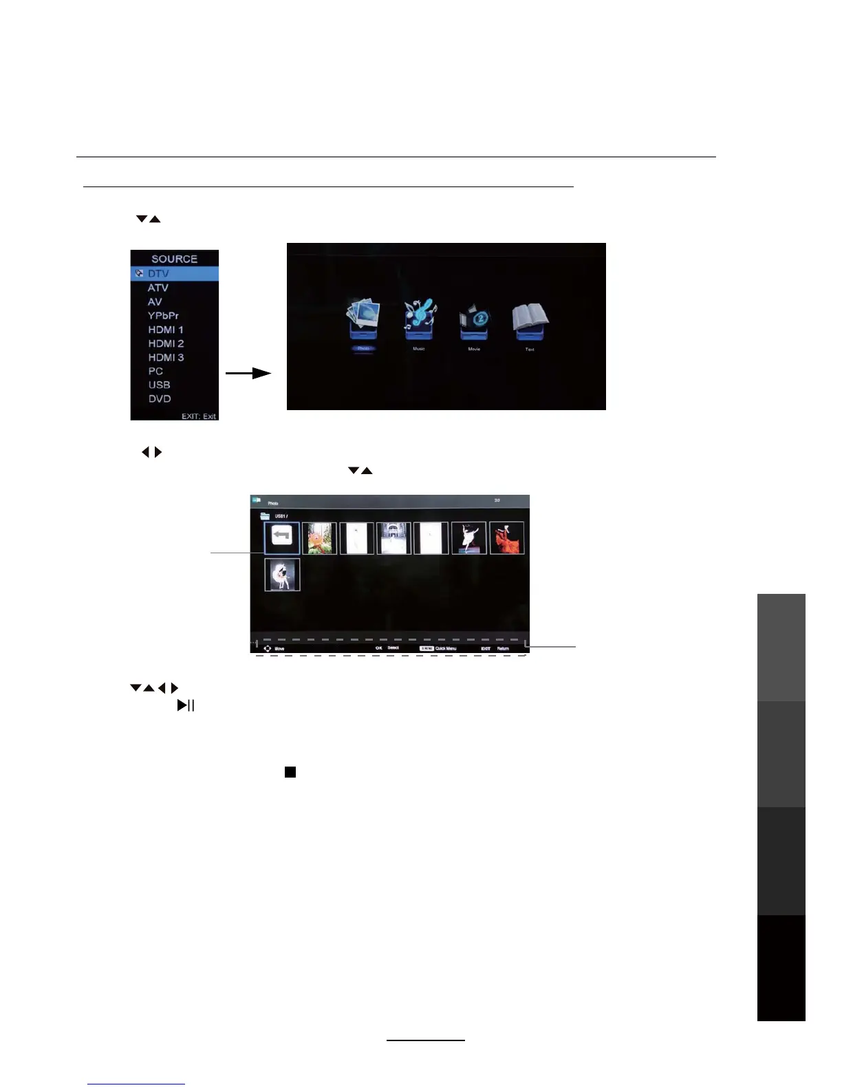 PHOTO, MUSIC, MOVIE and TEXT. Press to select the device and press OK button to enter.