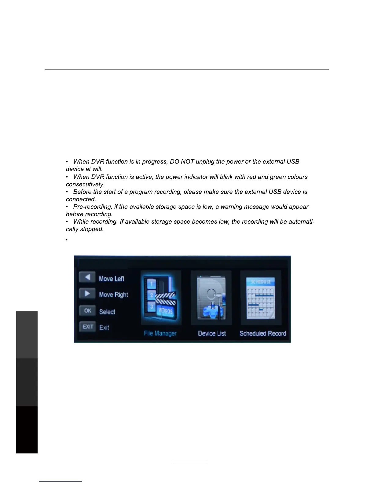 Digital Video Recording (DVR) settings (In DTV Mode only)