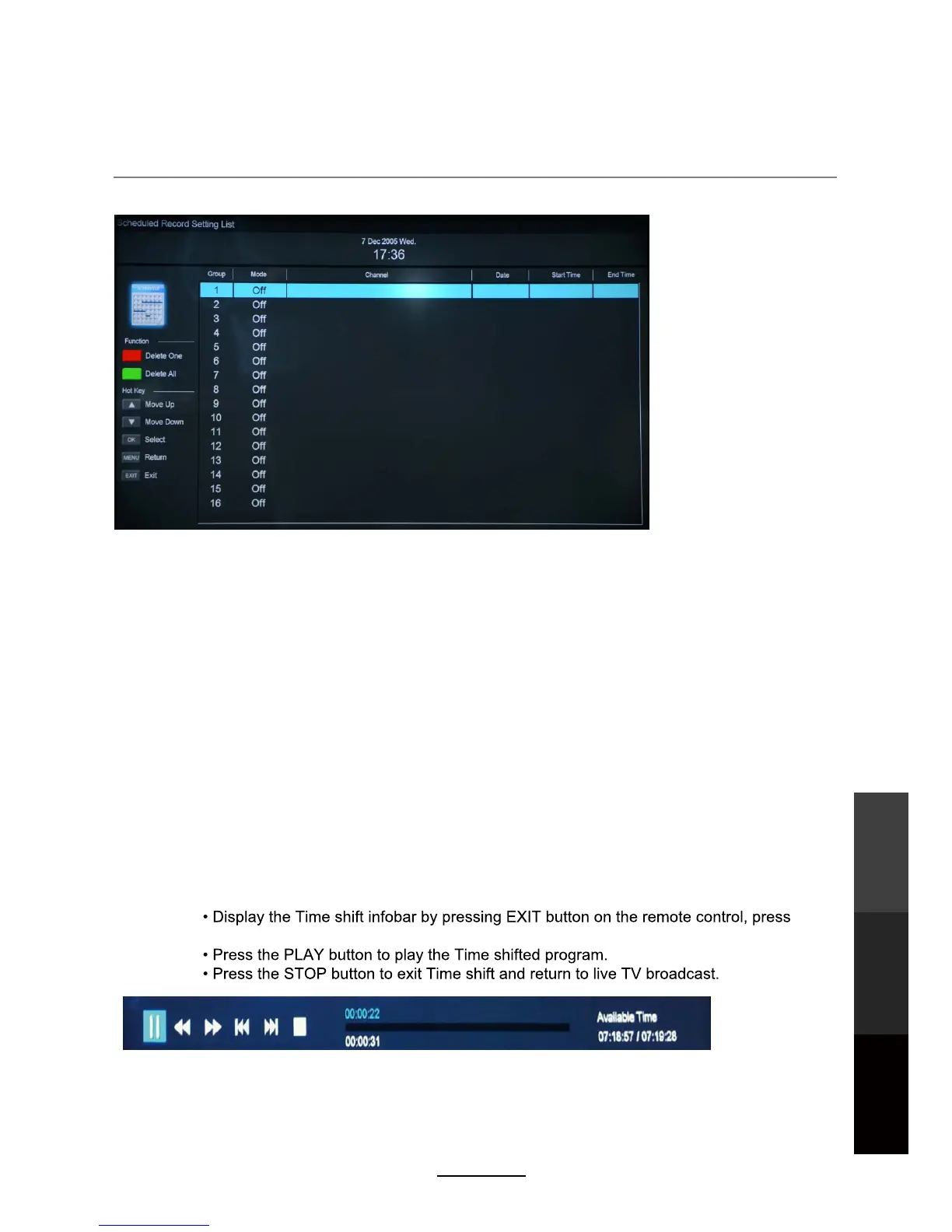 Red button: Delete One scheduled program.