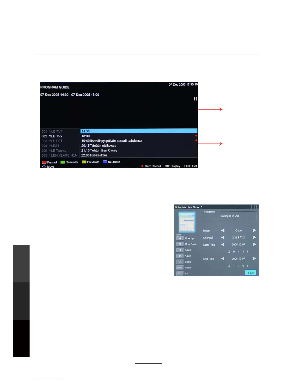 Once the program of choice has been highlighted, press the REC button on the remote control. This