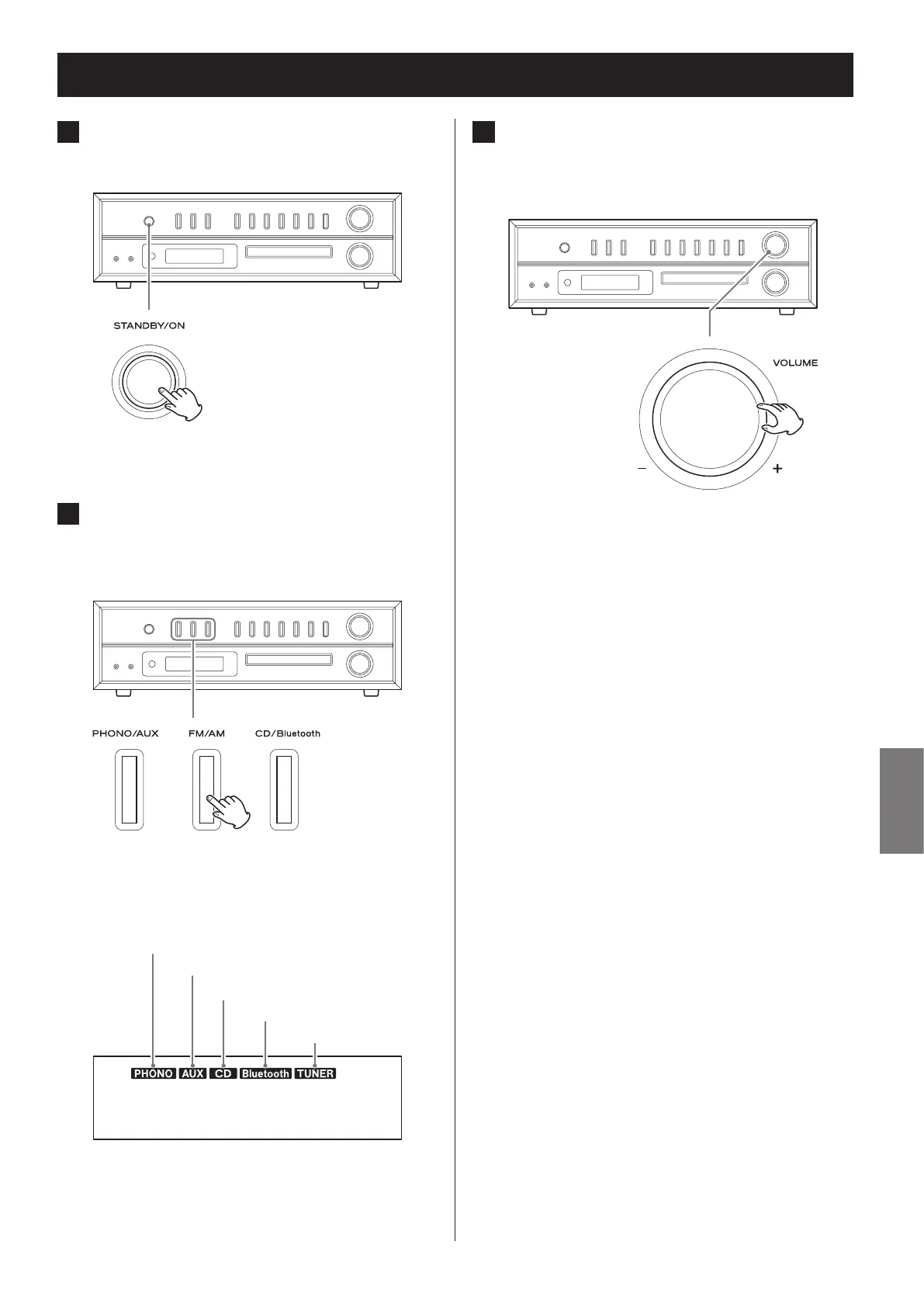 Rechtsdrehung des VOLUME-Drehreglers erhöht die