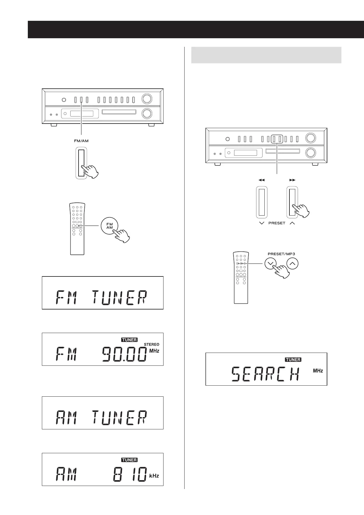 Premere il pulsante FM/AM per selezionare la banda FM