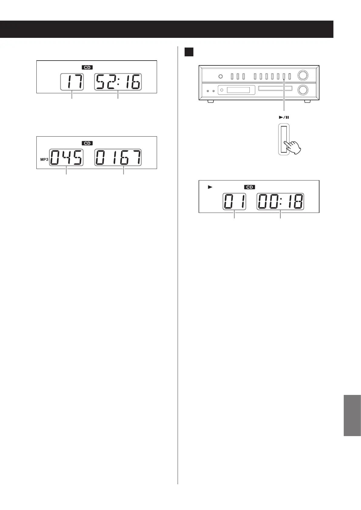 Afspelen start vanaf de eerste track en y verschijnt