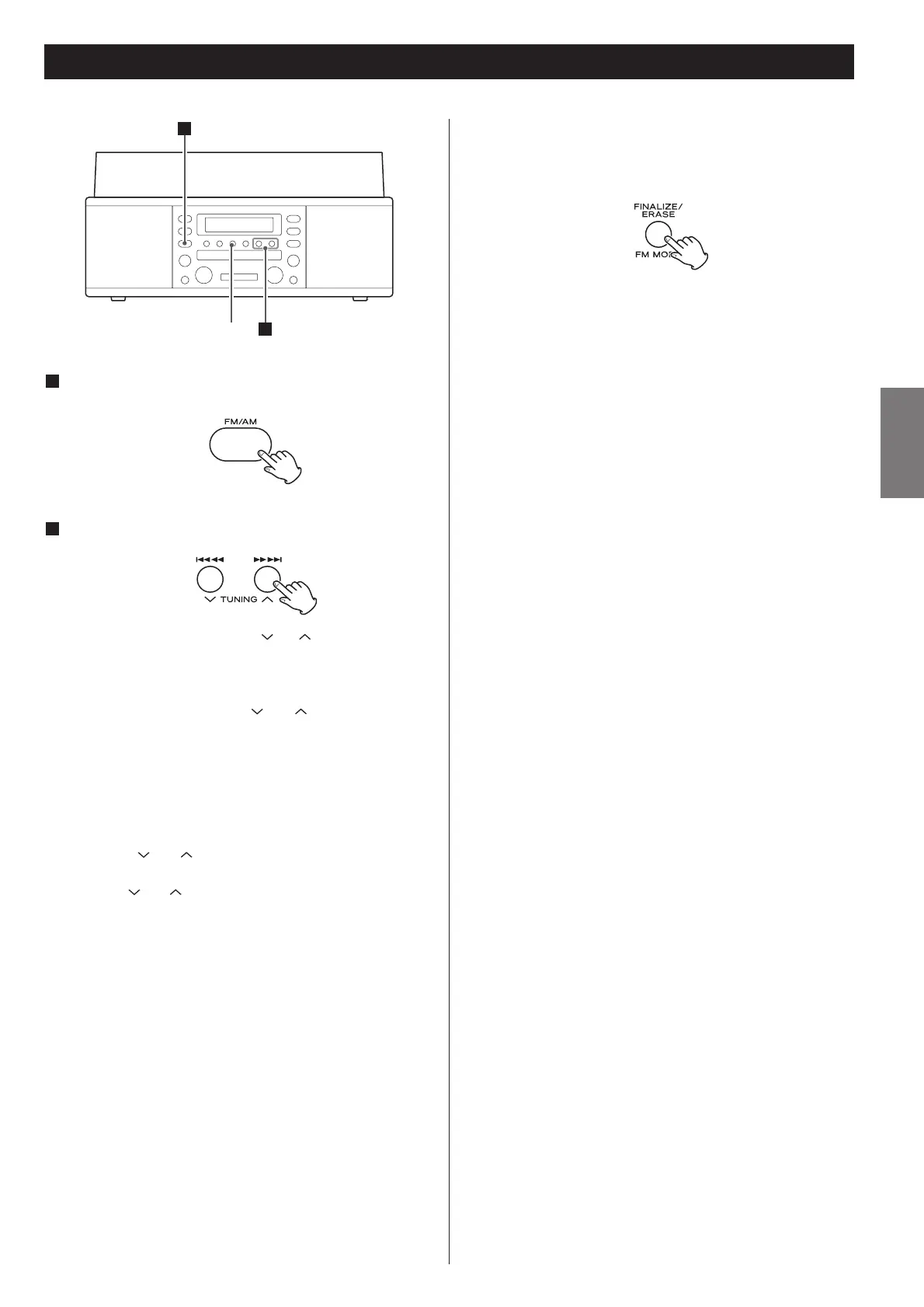 Hold down the TUNING button ( or ) until the frequency