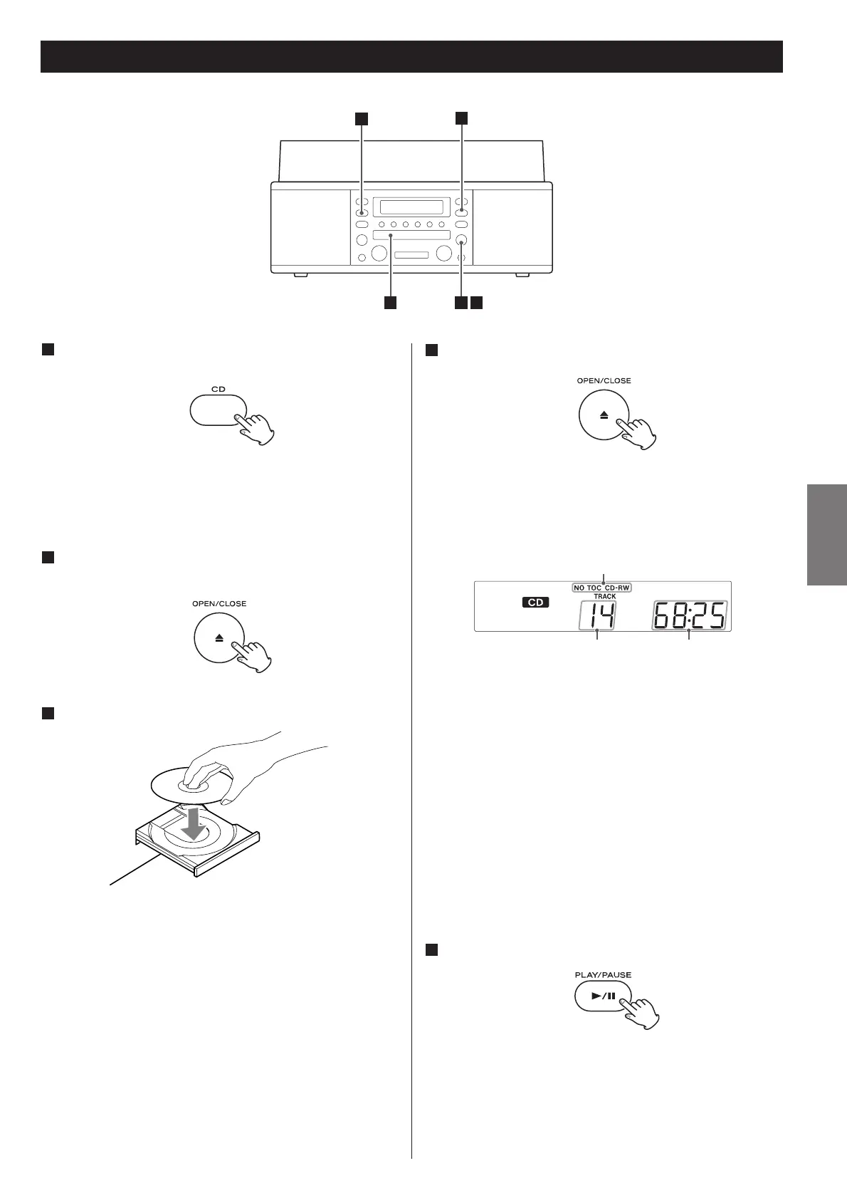 < Si vous mettez un disque, puis pressez le bouton PLAY/PAUSE