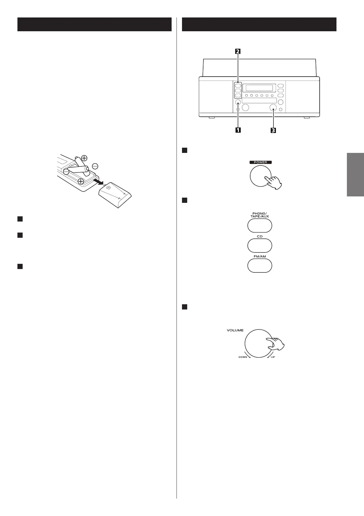 Insert two “AA” (R6, SUM-3) dry batteries. Make sure that the