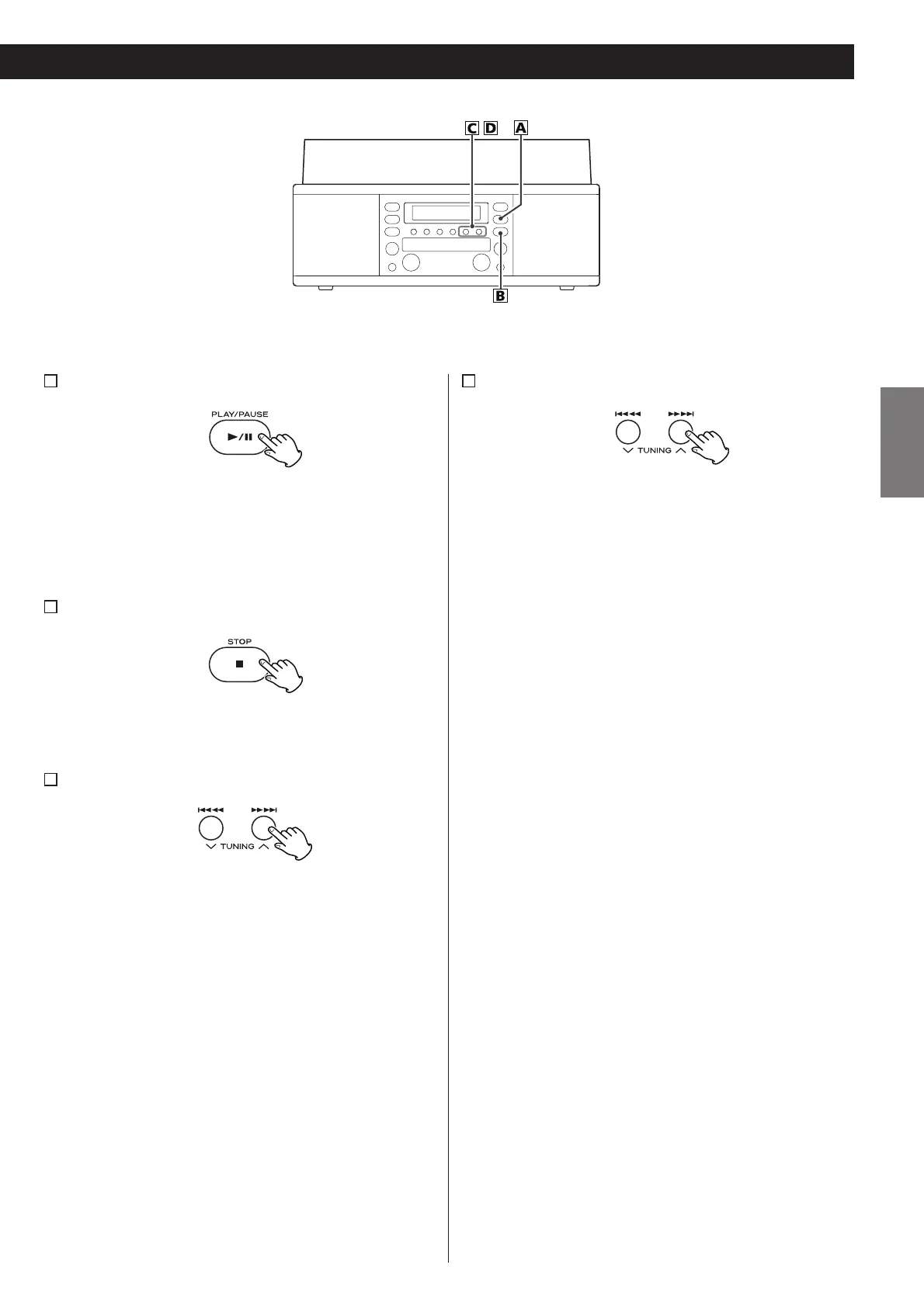 To resume playback, press the PLAY/PAUSE button (y/J)