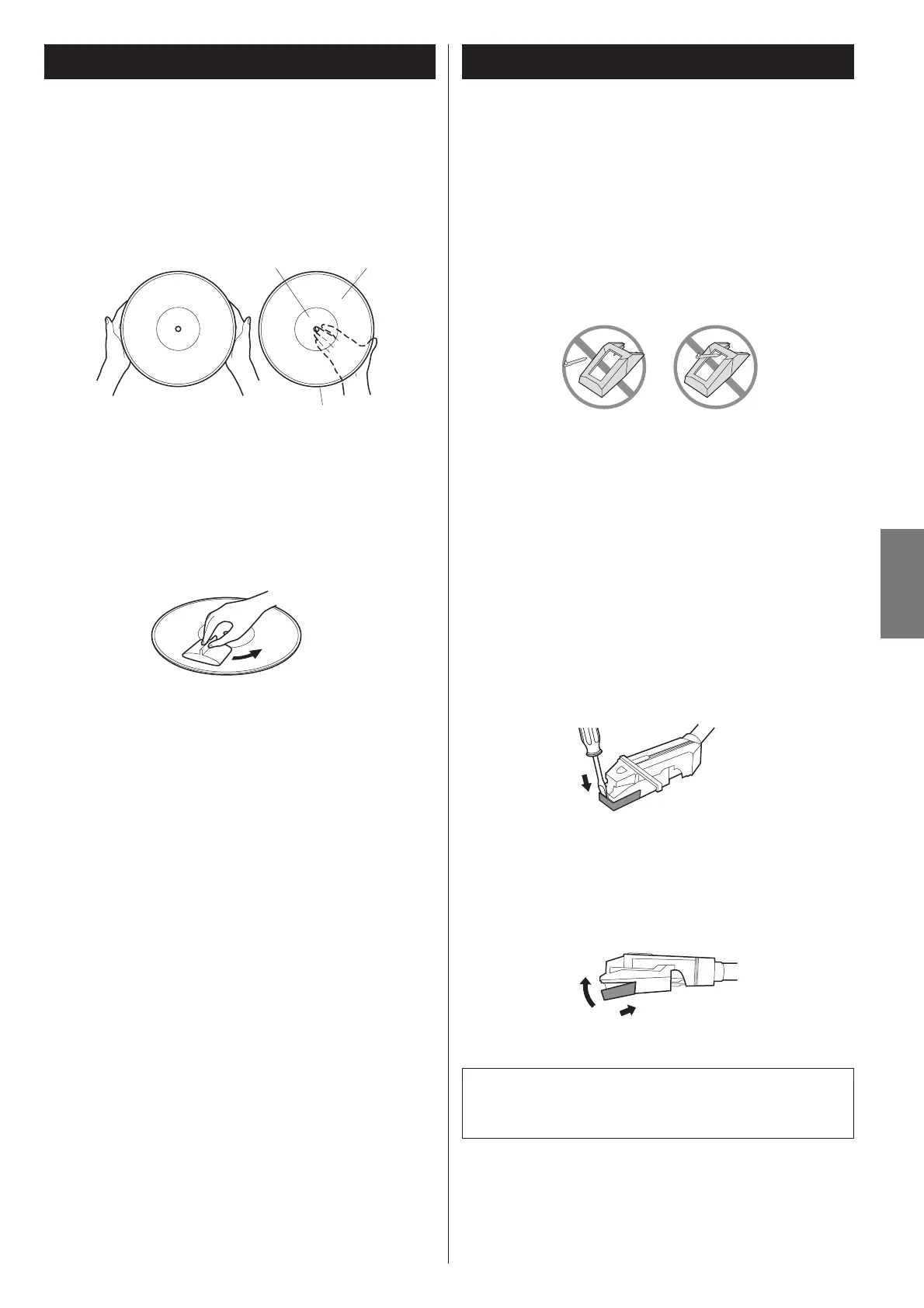 < Ne touchez pas les sillons. Manipulez les disques par leur bord ou