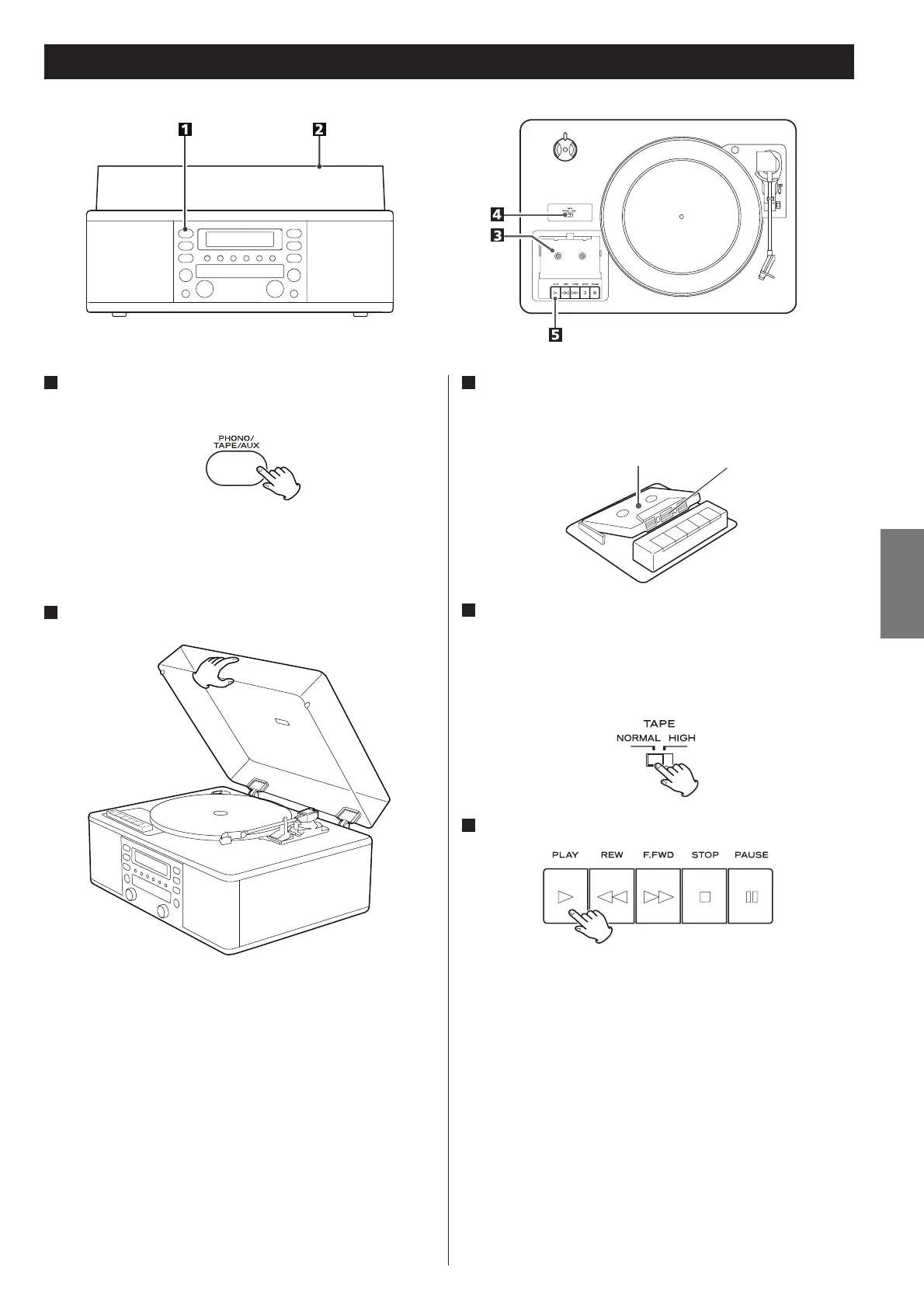 sélecteur TAPE de la platine tourne-disque sur NORMAL. Lorsque