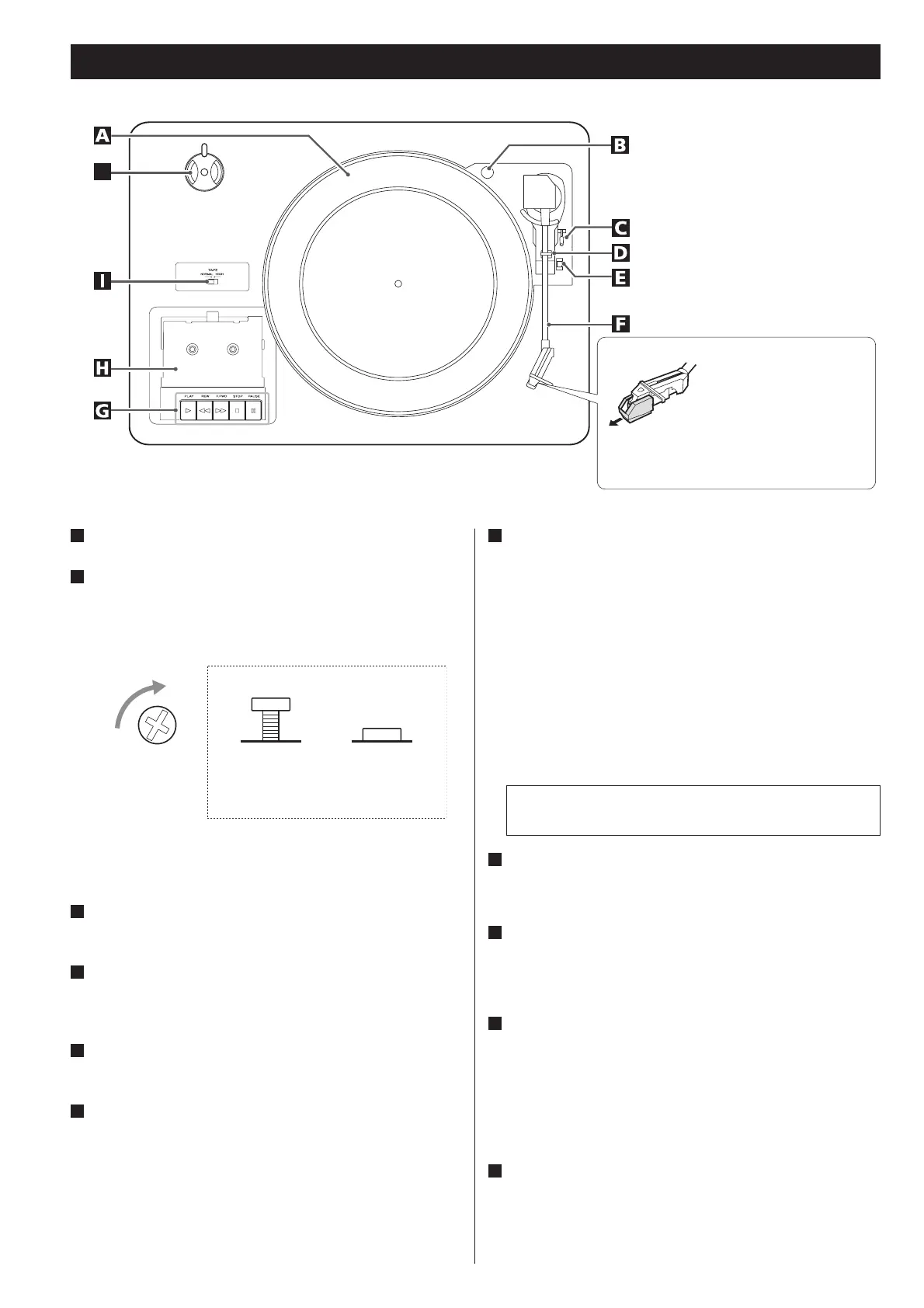 Utilice esta palanca para levantar el brazo del plato giradiscos.