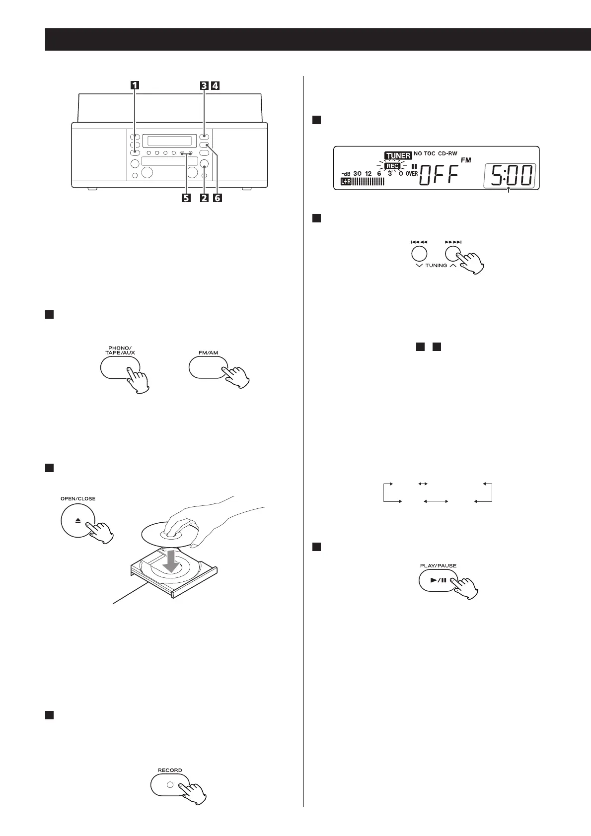 Pulse el botón PHONO/TAPE/AUX o el botón FM/AM para
