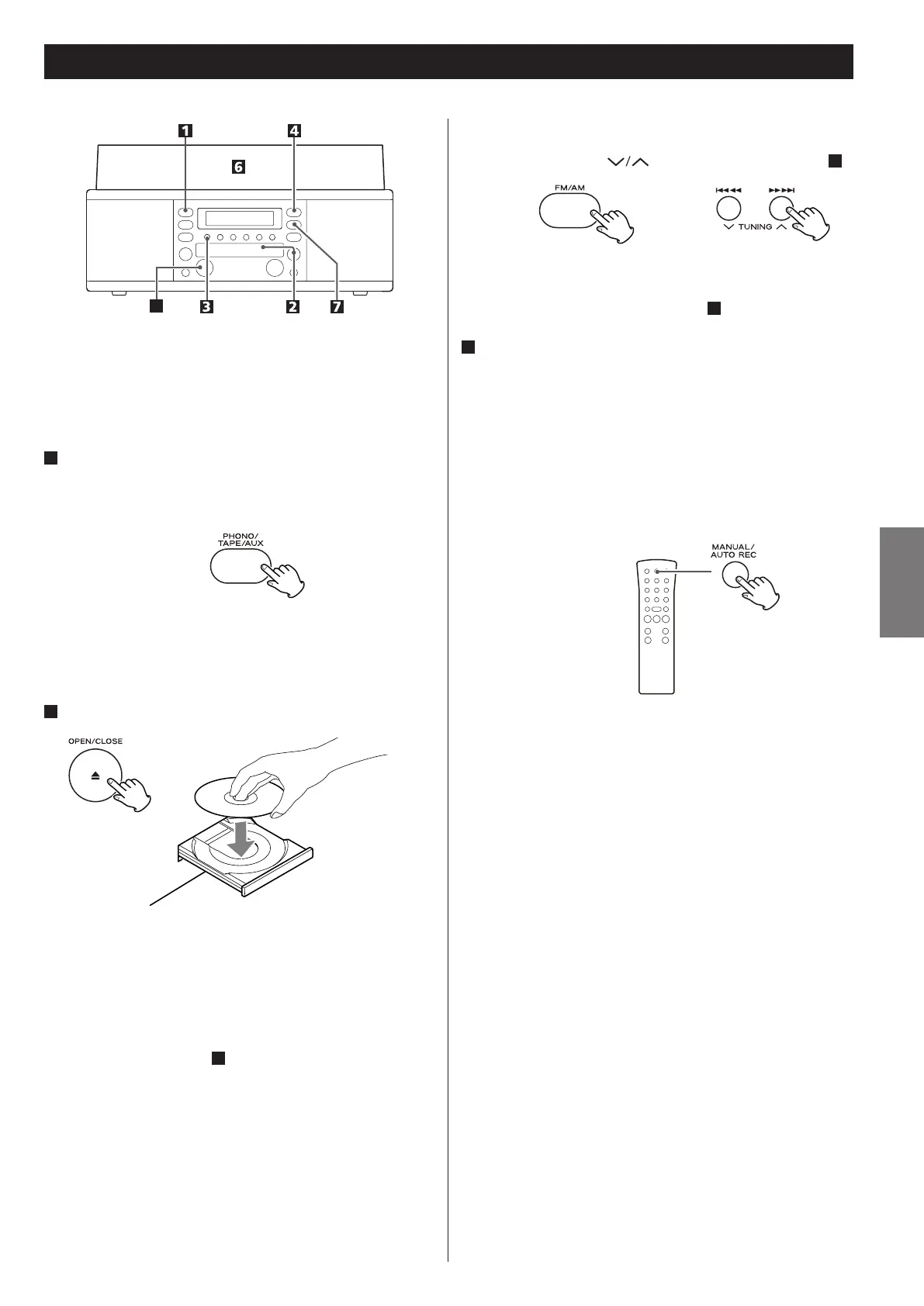PHONO/TAPE/AUX ou sur la touche FM/AM pour