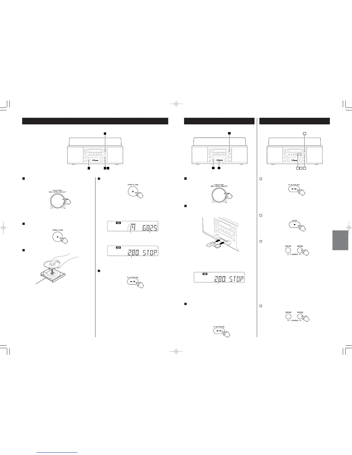Select CD by turning the FUNCTION/REC LEVEL/SELECT