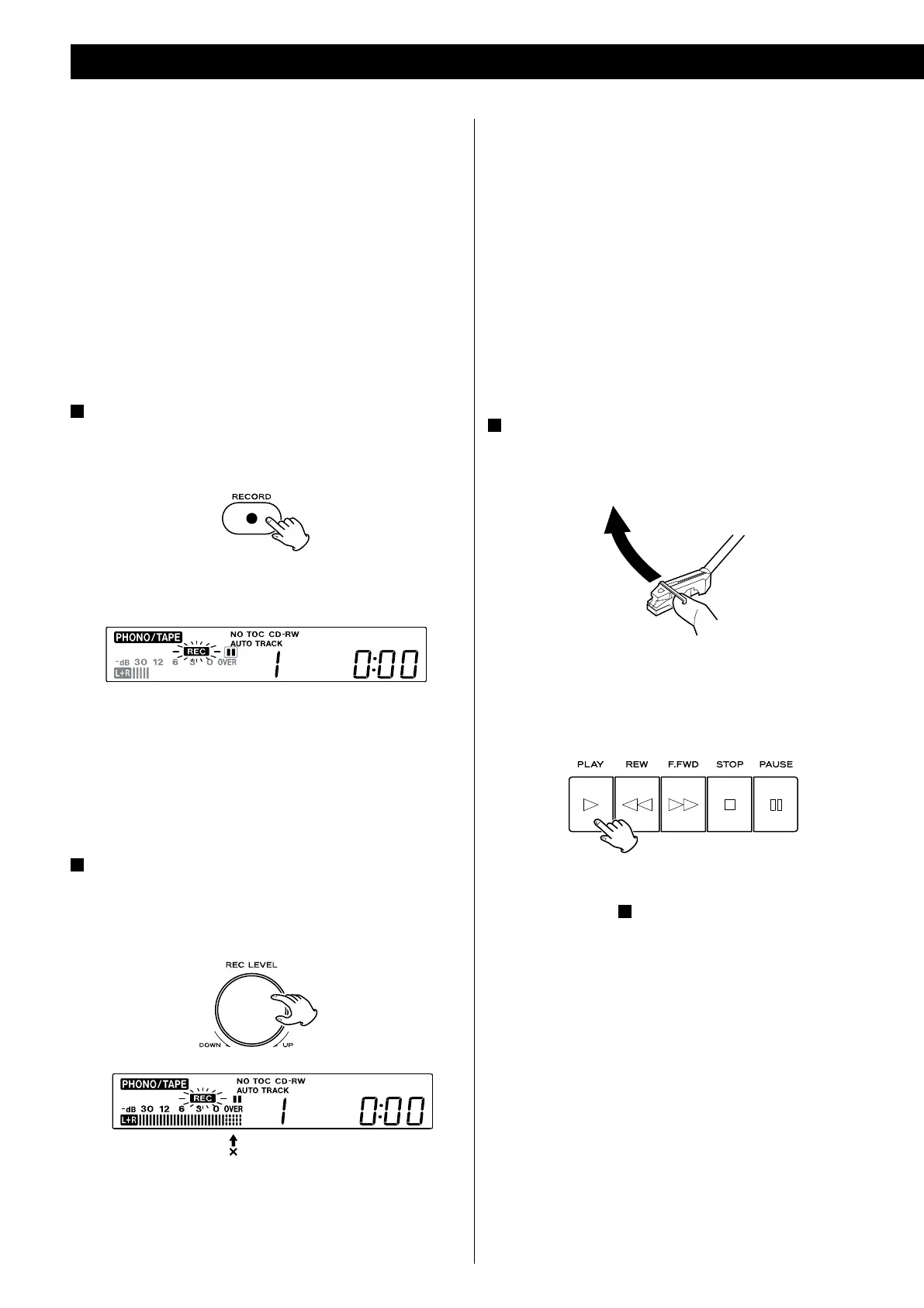 “CD-RW“) indicators light on the display, and press the RECORD