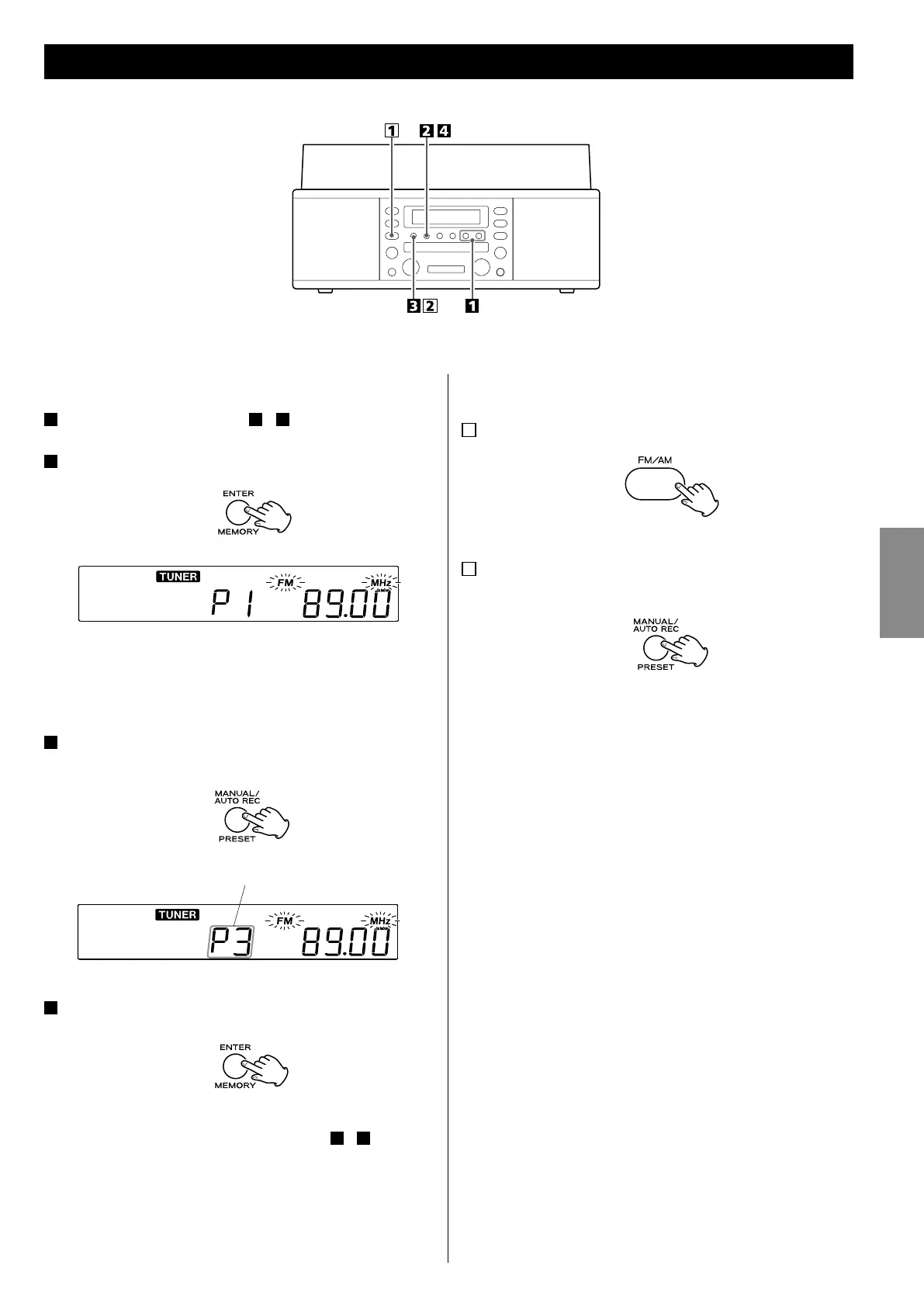 Puede almacenar emisoras de FM y AM en las presintonías 1 a 9.