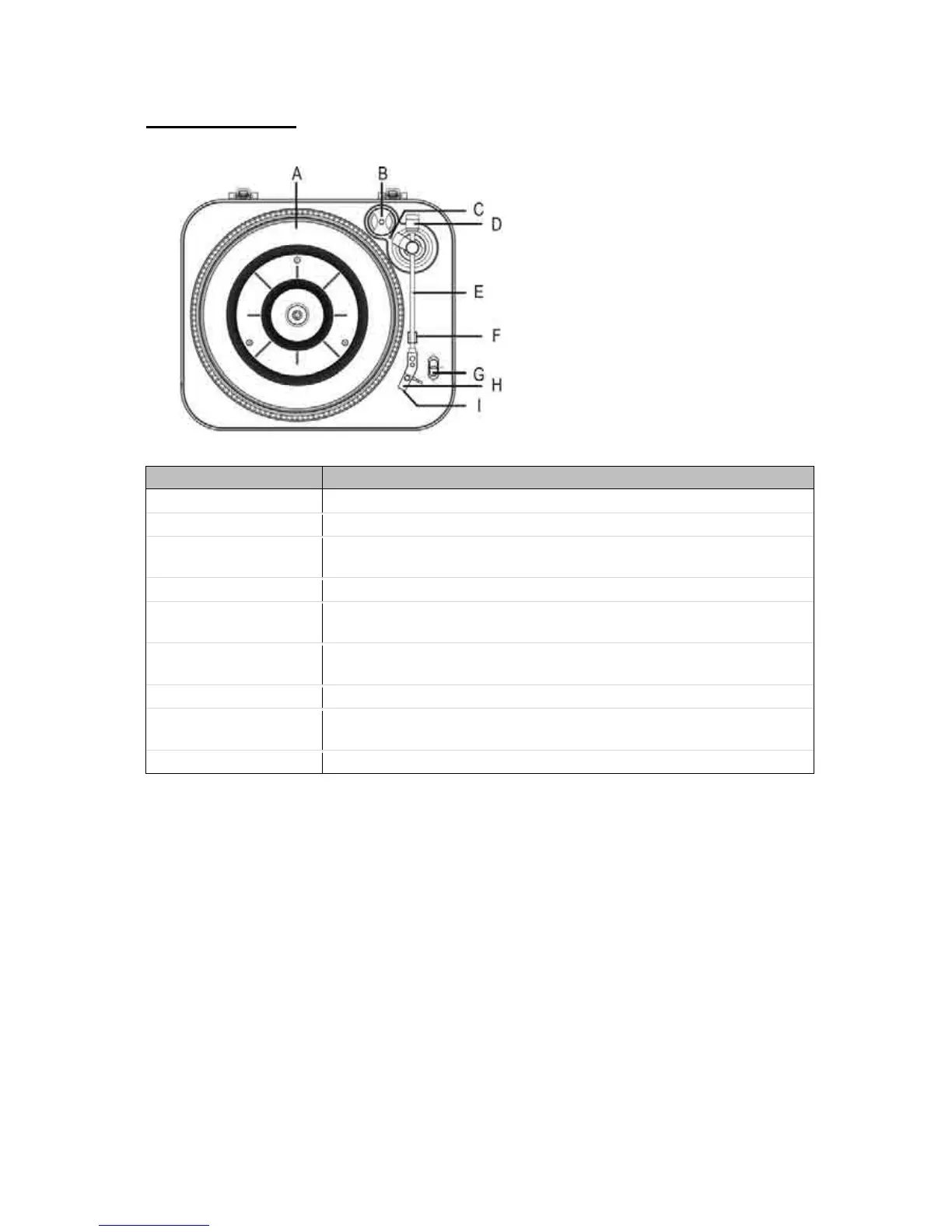 G. Speed Selector Select the appropriate speed for the current record before playing.