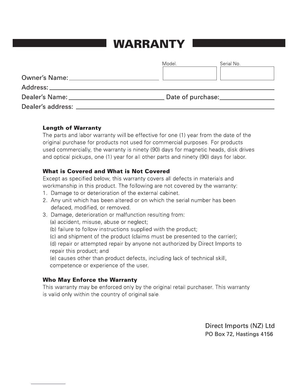 Teac LPU190 - WARRANTY; Length of Warranty; What is Covered and What is Not Covered; Who May Enforce the Warranty
