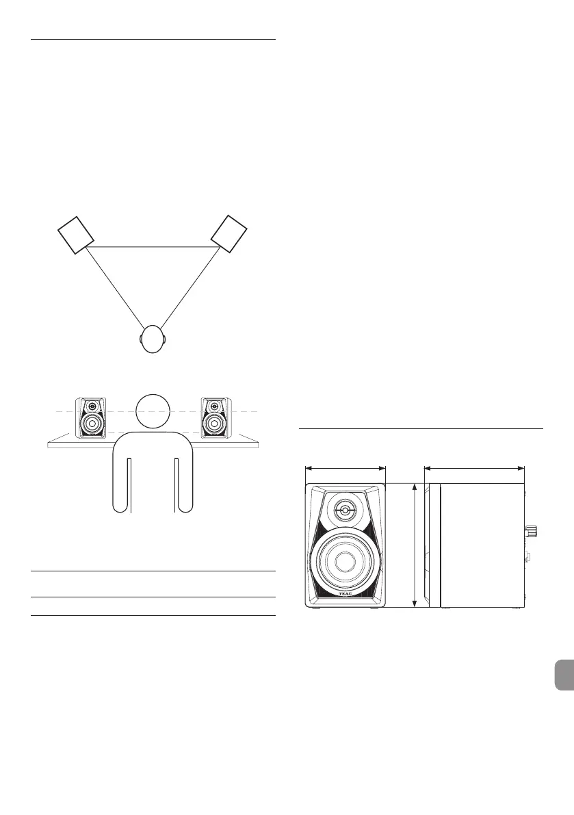 • Plaats de luidsprekers zodanig dat ze een gelijkzijdige