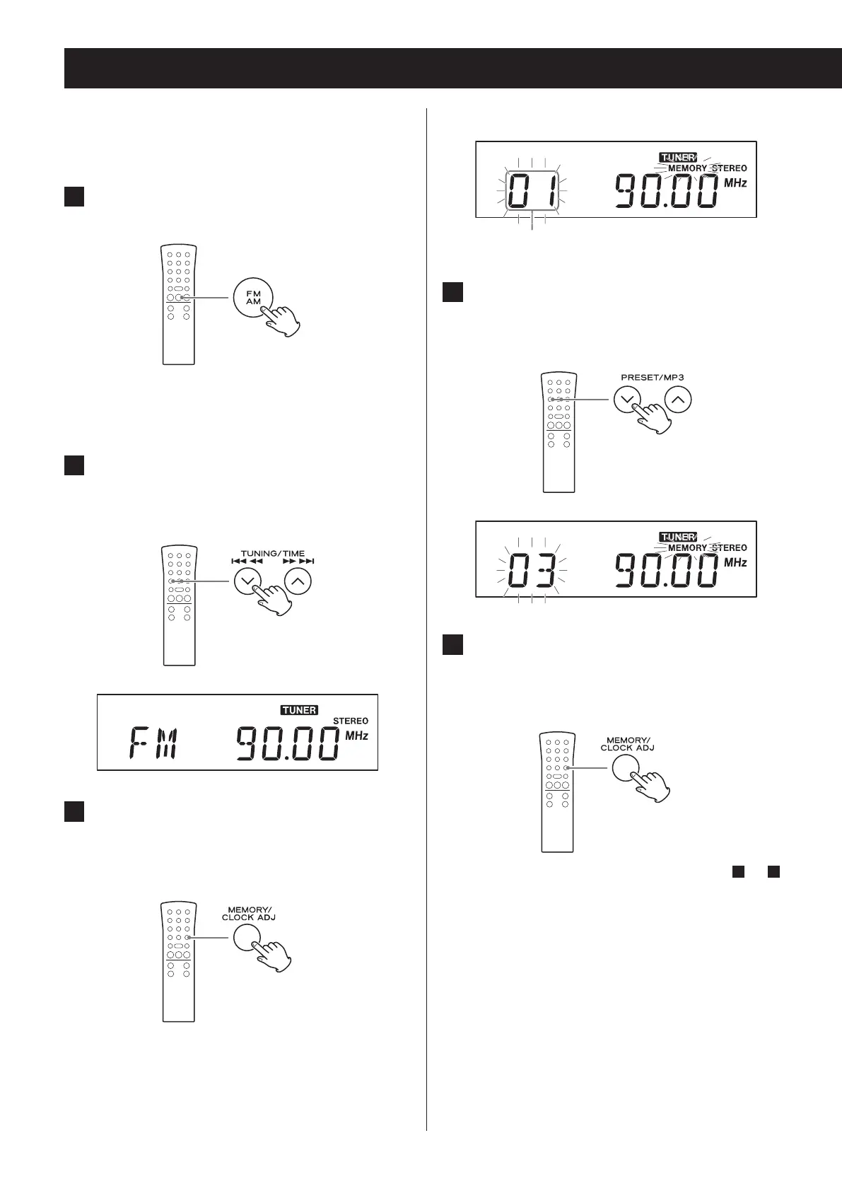 FM- en AM-stations kunnen in de presetnummers 1 tot