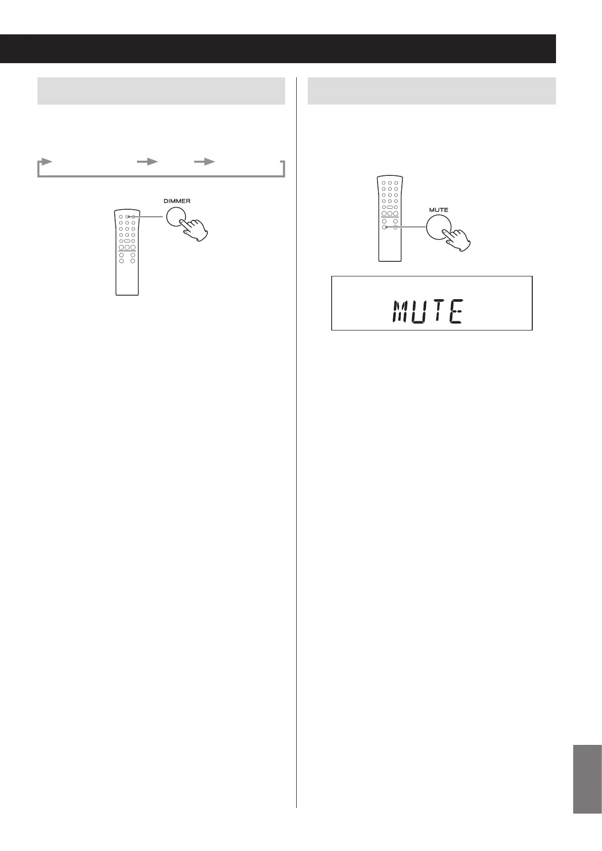 Tryck på DIMMER-knappen för att gå igenom följande